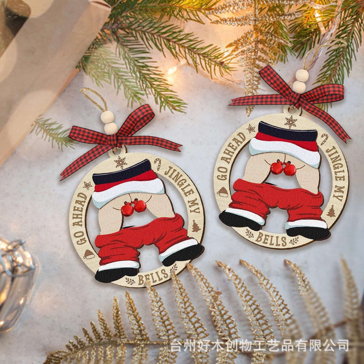 跨境爆款木制圣诞树挂件圣诞老人派对圣诞树装饰挂件小吊件装饰