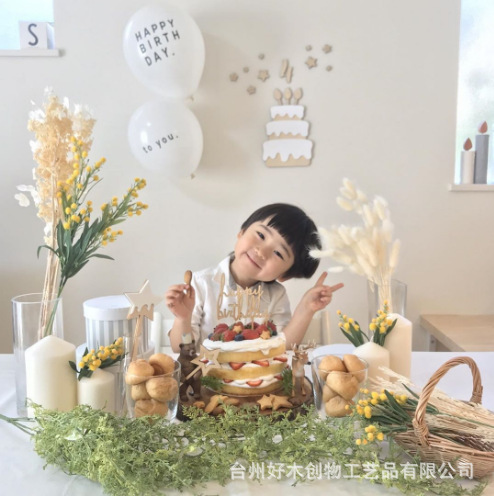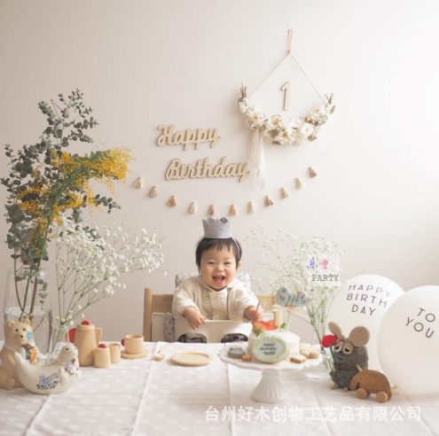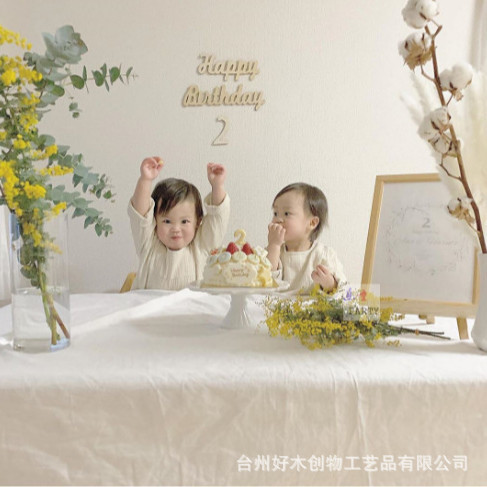 爆款简约风森系木质生日牌生日派对装饰木质字母生日英文墙贴