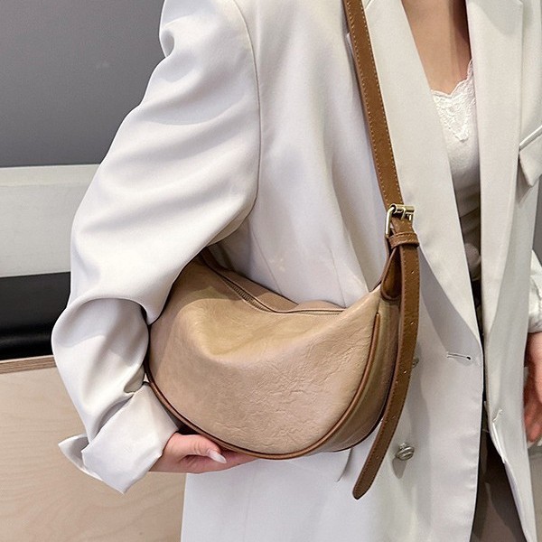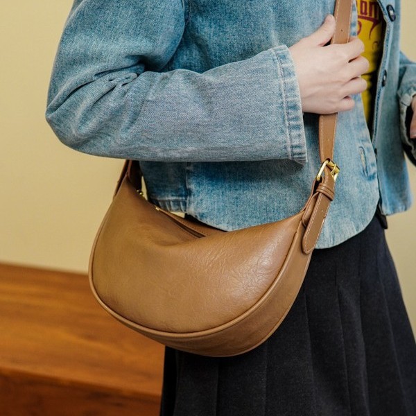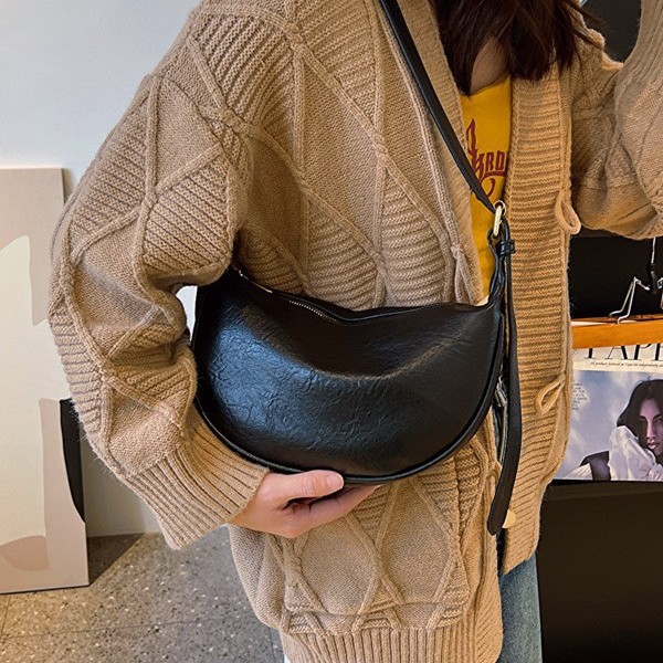 2025流行时尚高级感气质简约纯色女士单肩包包女饺子包韩版斜挎包