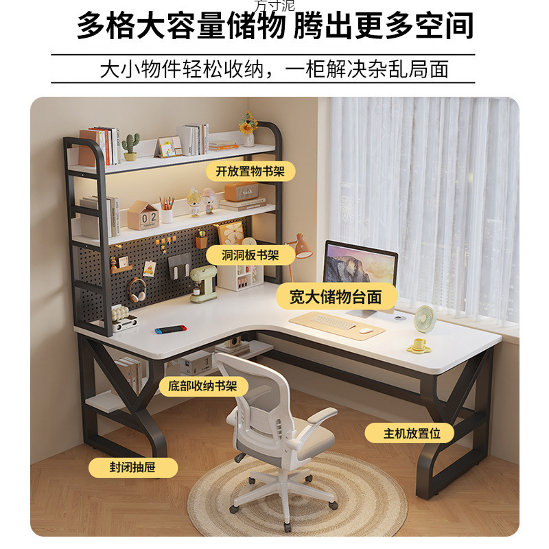 | 颜色 | 【右转角】橡木色+黑架【洞洞板+书架】 | 尺寸 | 120x60cm【现货实木】 |