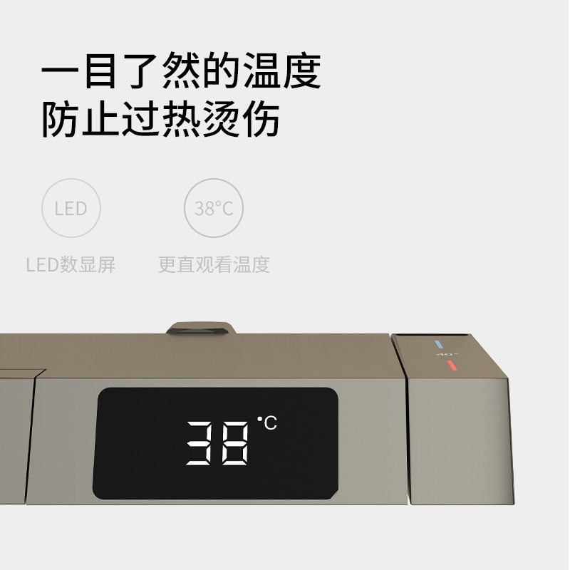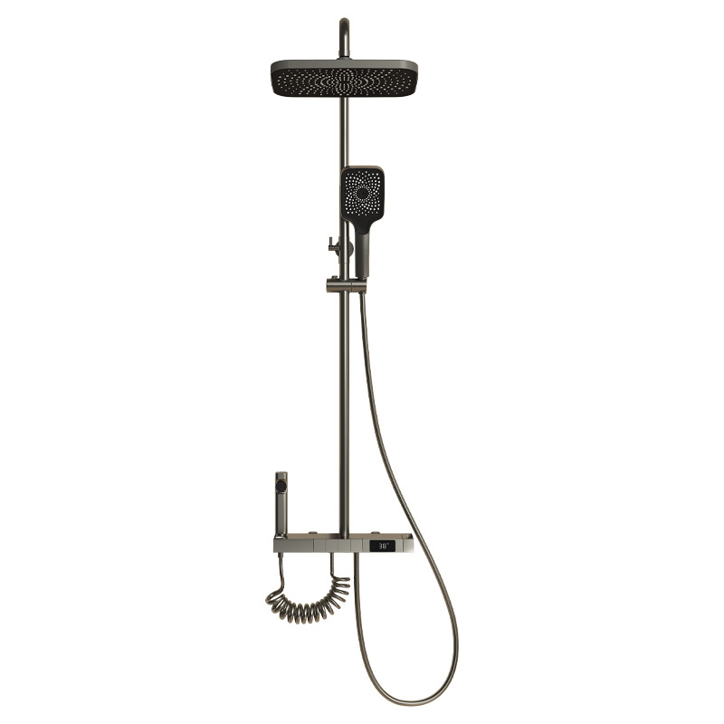 九牧王恒温数显枪灰色全铜花洒套装沐浴增压喷头瀑布式出水卫生间