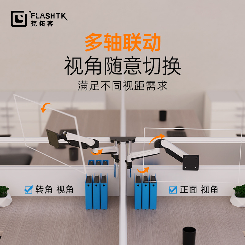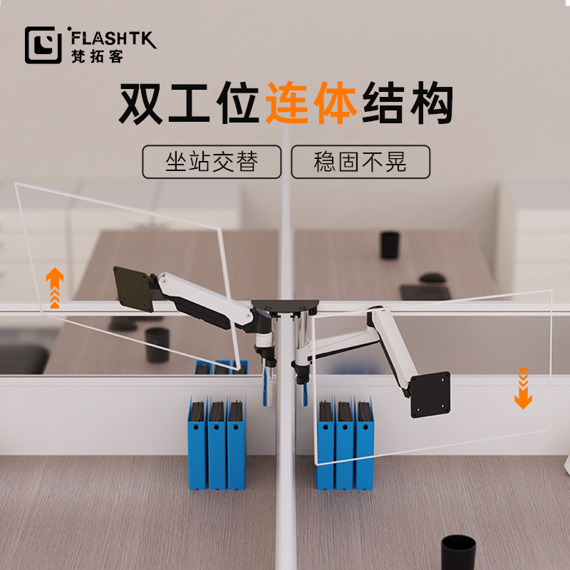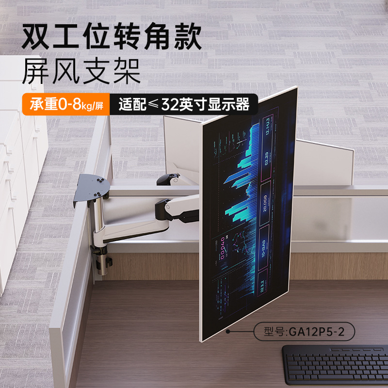 双工位屏风显示器支架办公桌升降气压臂显示屏挂架工位屏风转角