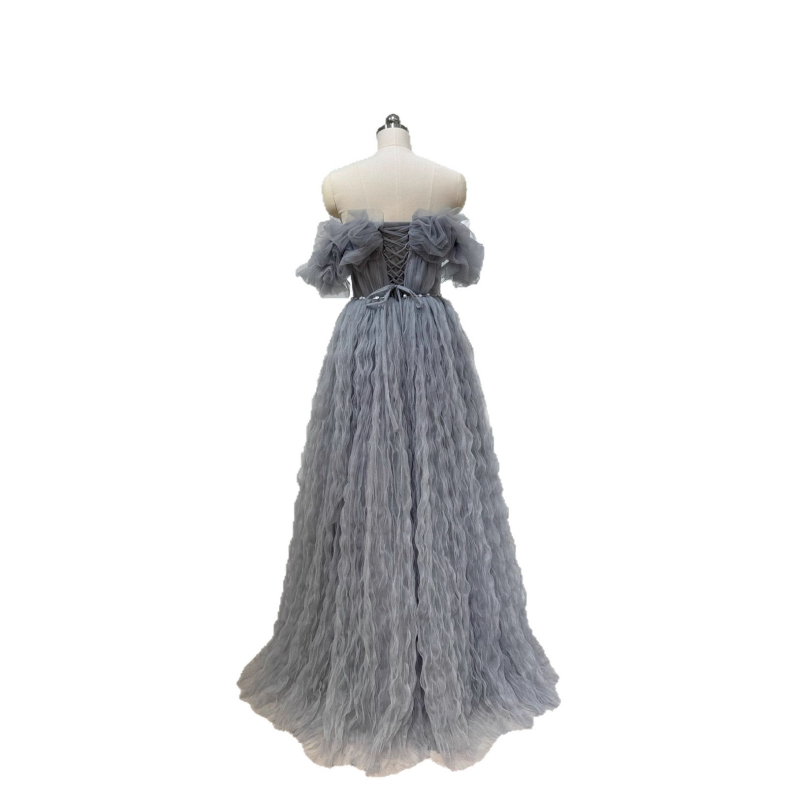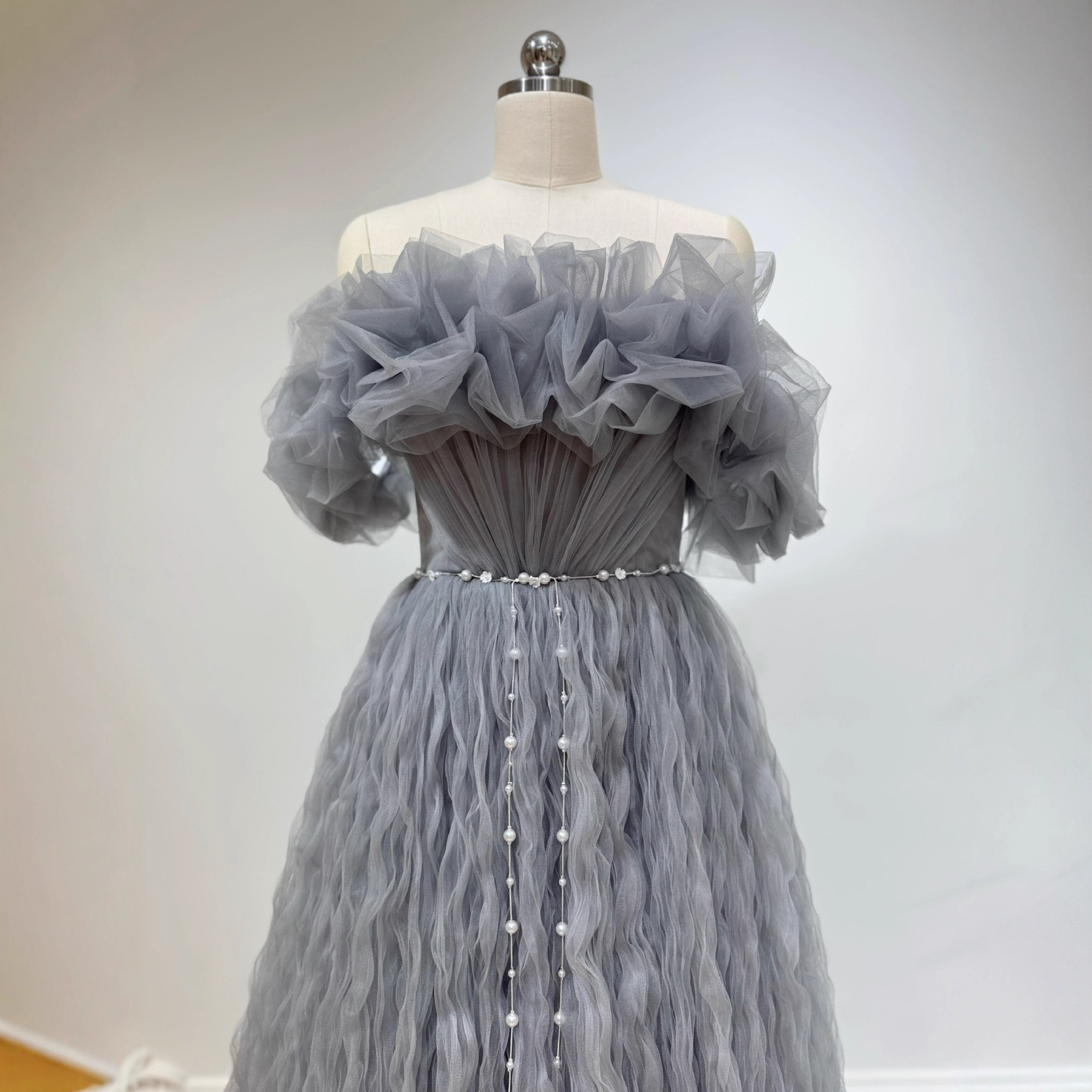 一字肩灰色晚礼服女宴会气质主持人艺考礼服裙轻奢小众高端高级感