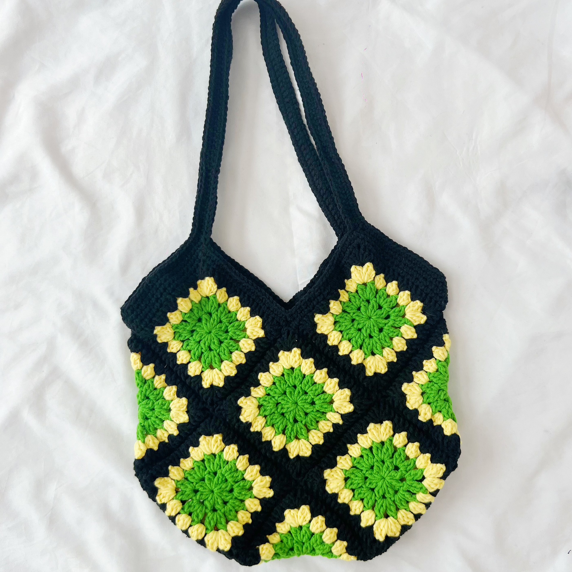 成品现货手工女士托特包钩织小雏菊向日葵祖母方格手提包单肩包