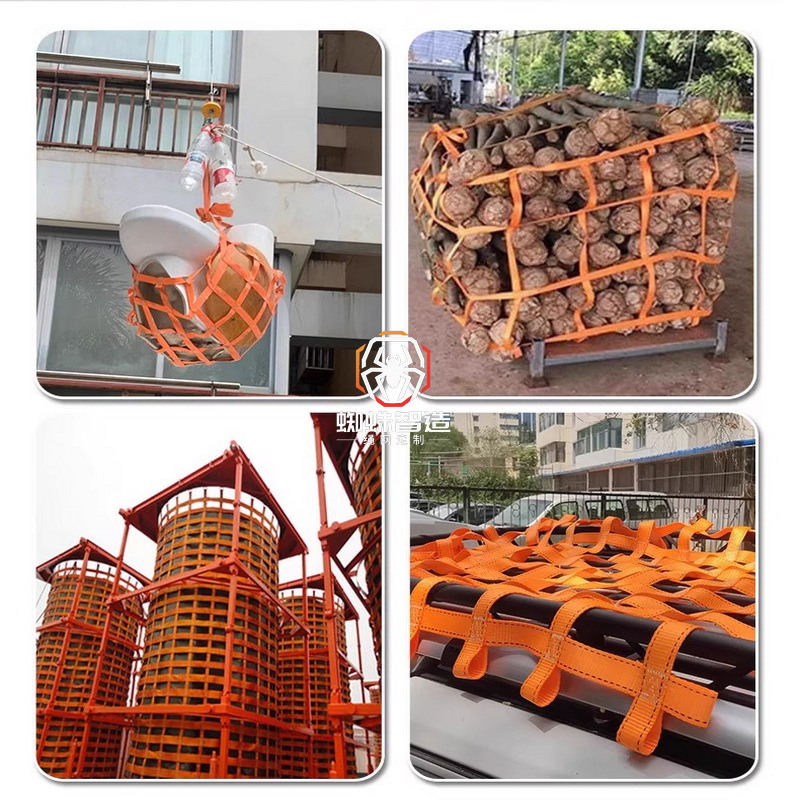 橙色5cm织带防护网 扁平起重吊装网 抱胎网 弹力躺床绷带蜘蛛智造