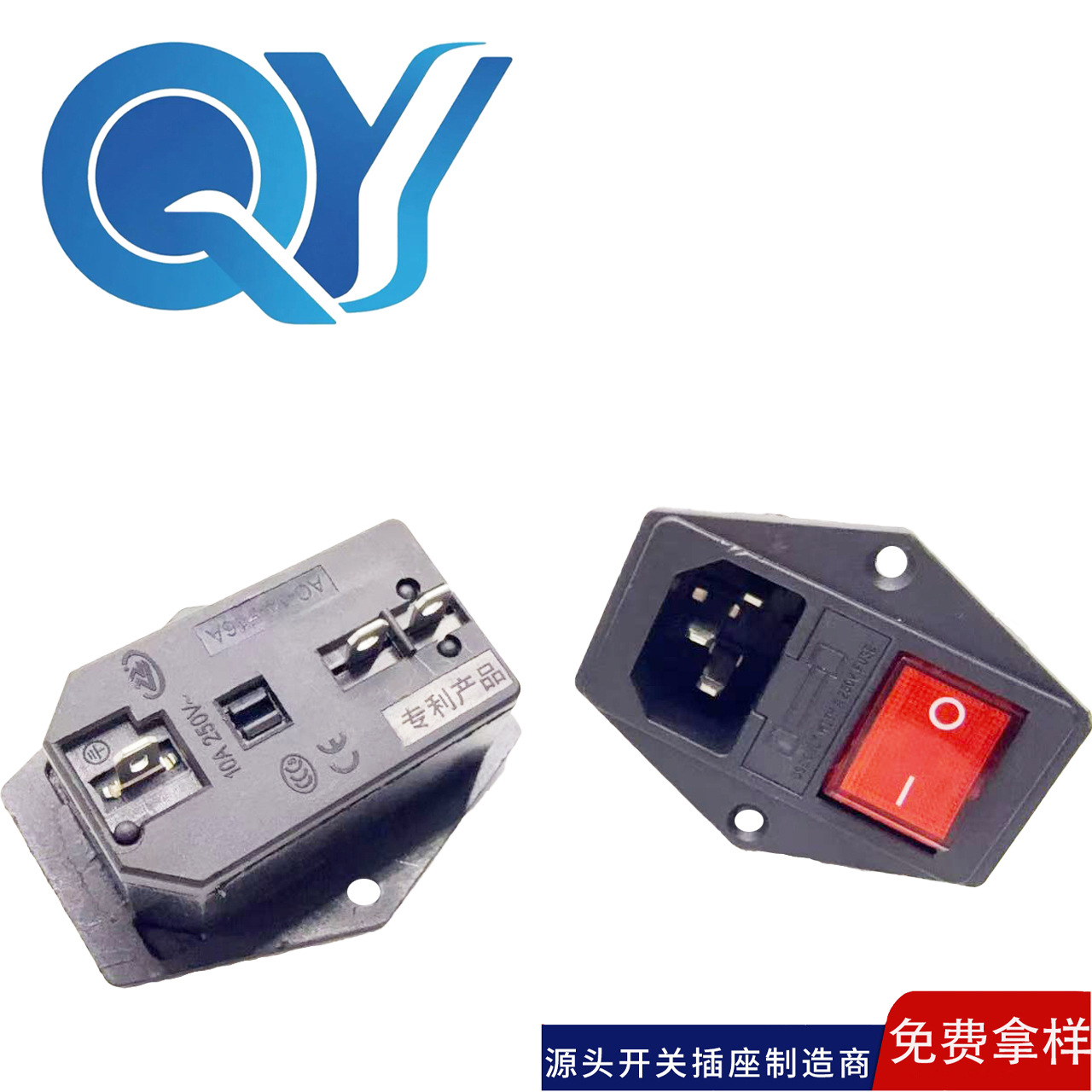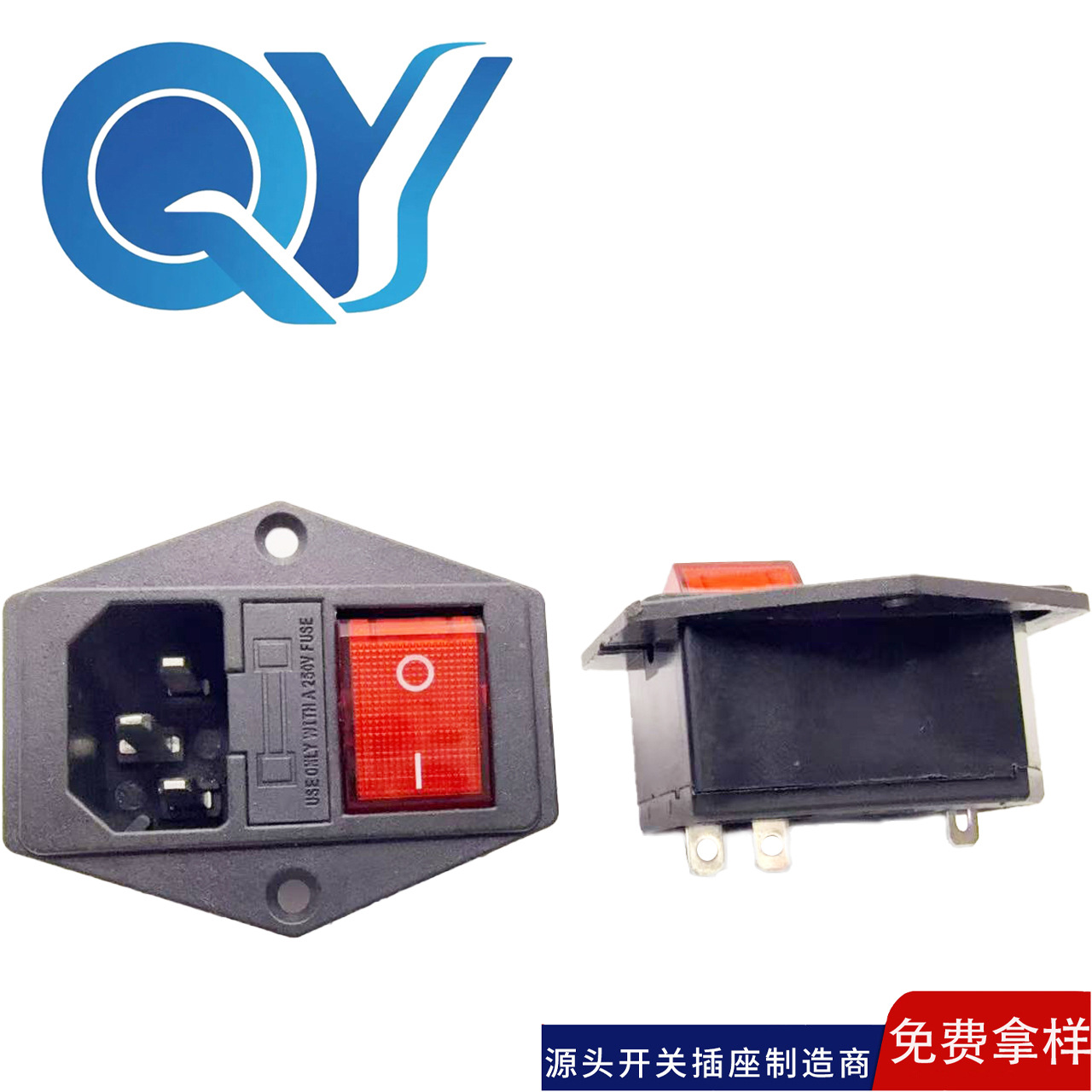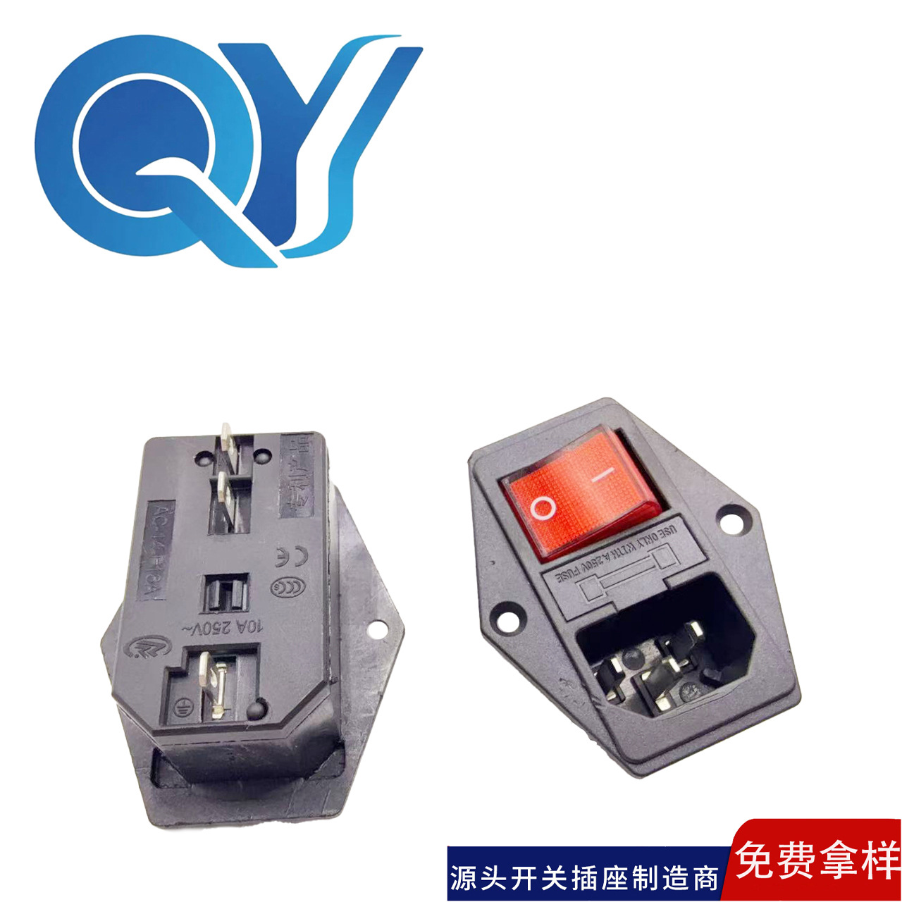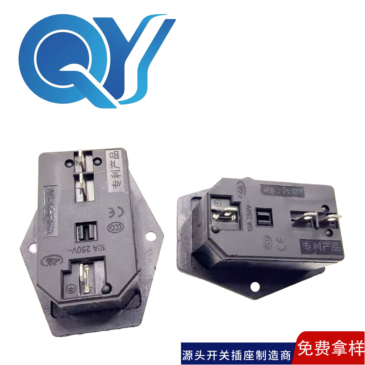连体AC电源插座AC-304 三合一 带固定孔带开关 品字电源插座