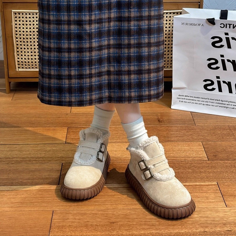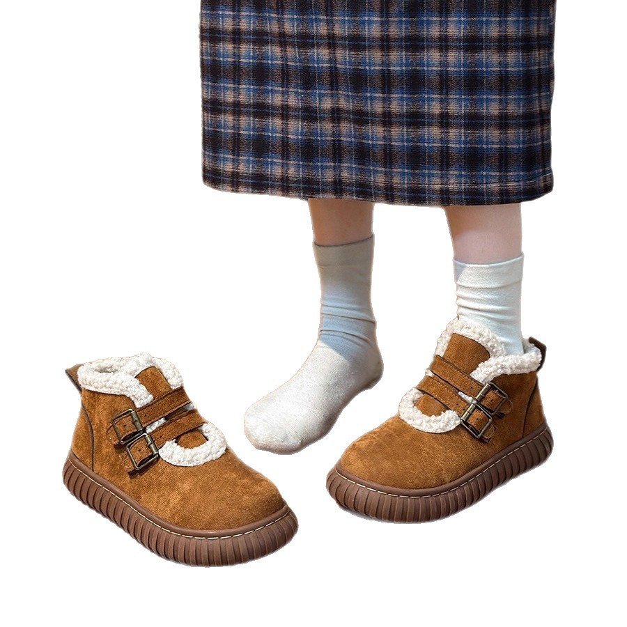 跨境2025新款雪地靴过年美拉德女鞋棉鞋加绒保暖麂皮绒短筒靴扣带