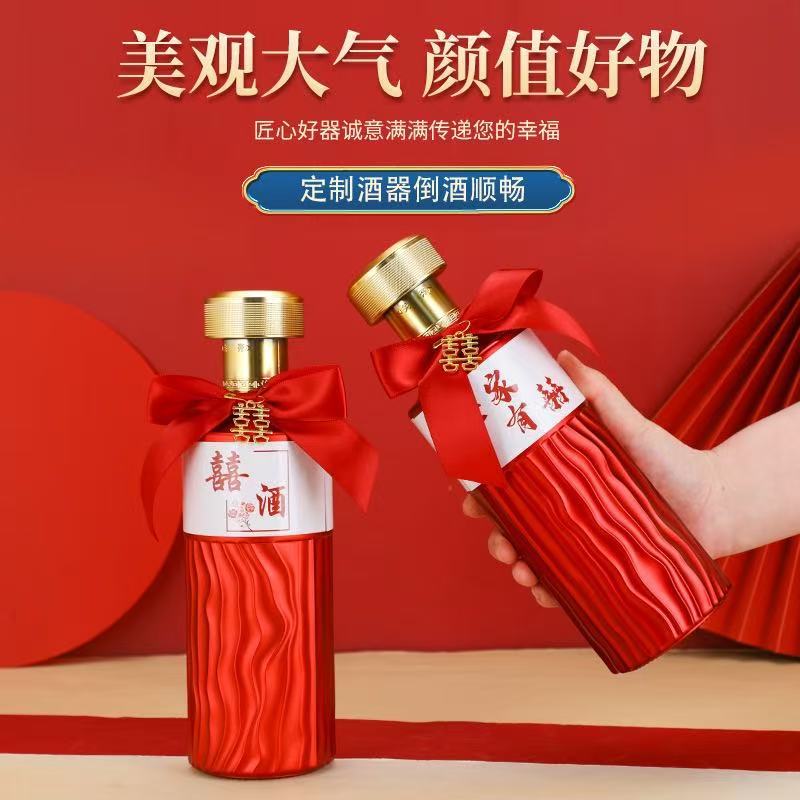 婚庆喜宴红色喜酒瓶玻璃空酒瓶满月酒瓶子结婚喜宴白酒包装瓶全套