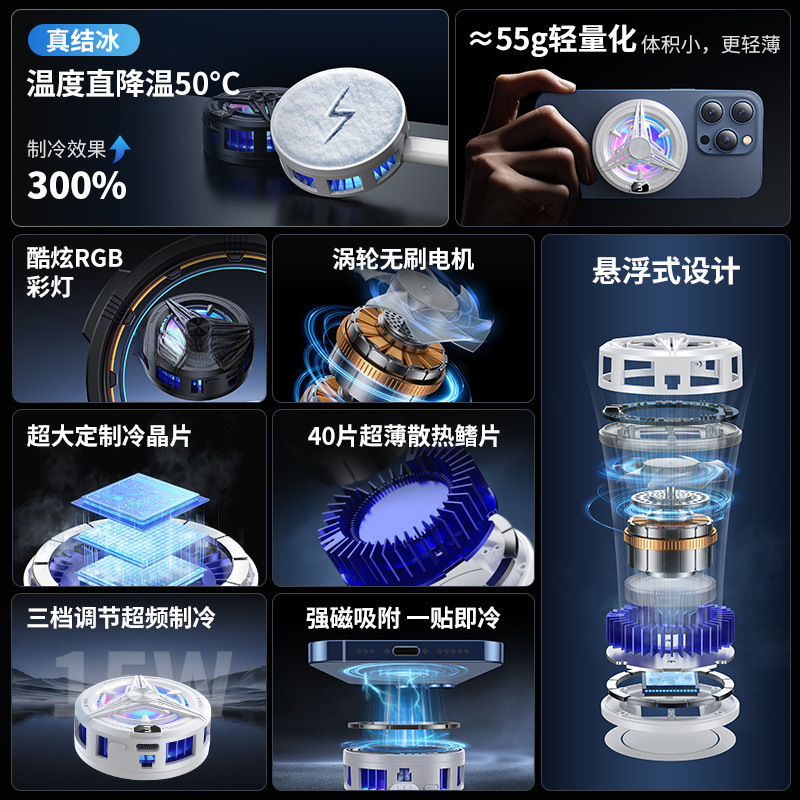 手机散热器数显半导体制冷结冰降温神器磁吸静音背夹平板多功能