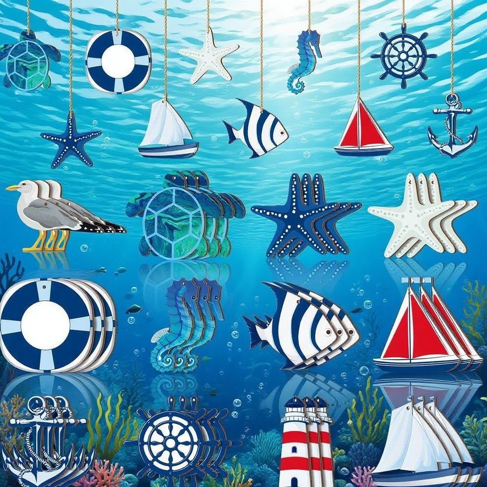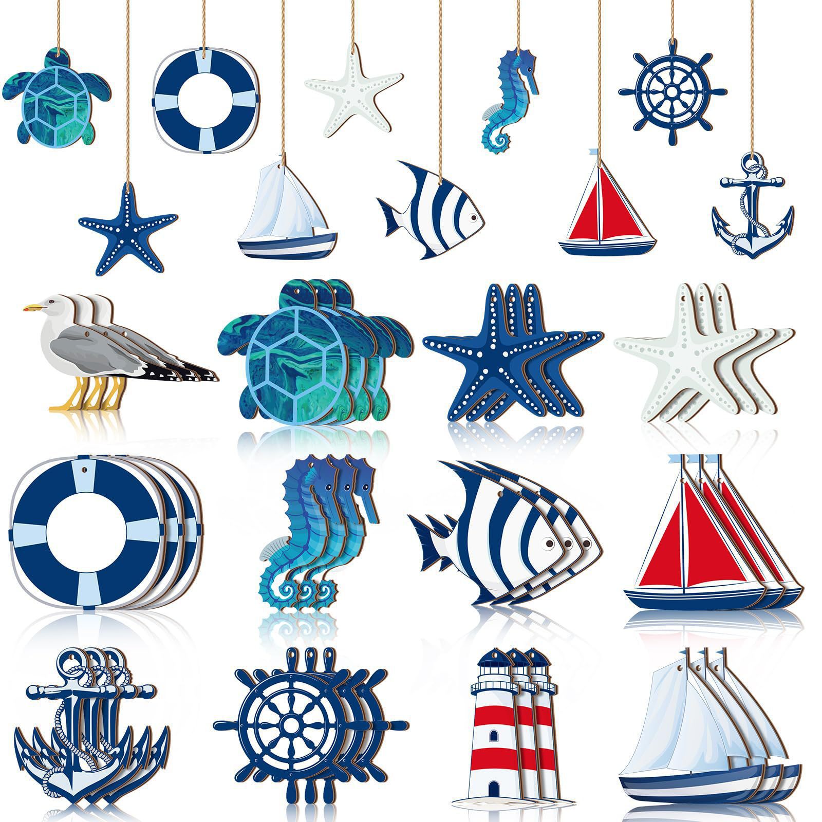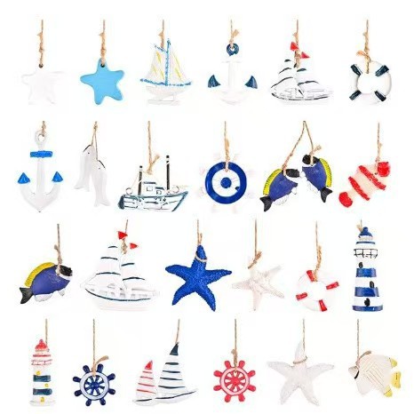 跨境夏季木制工艺品航海装饰家用迷你救生圈海星帆船沿海装饰挂件