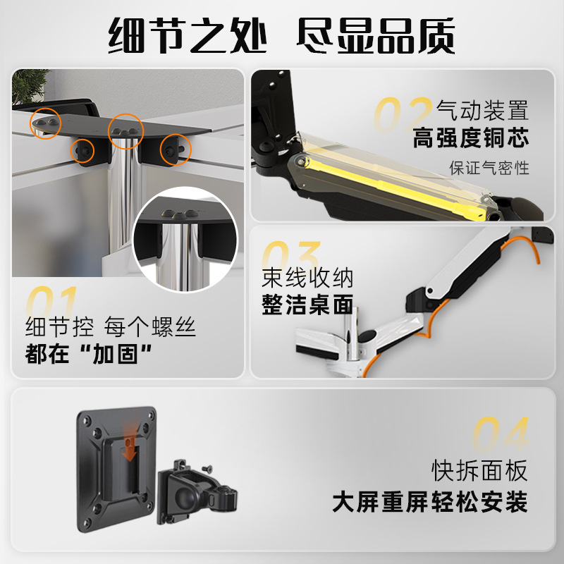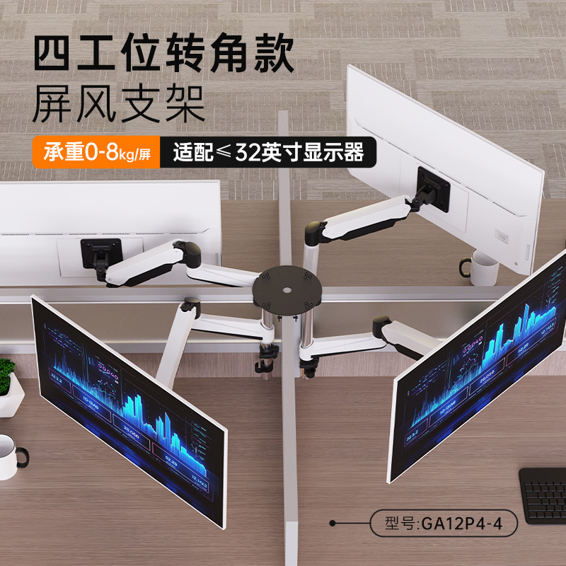 四工位屏风显示器支架办公桌升降气压臂显示屏挂架工位屏风转角