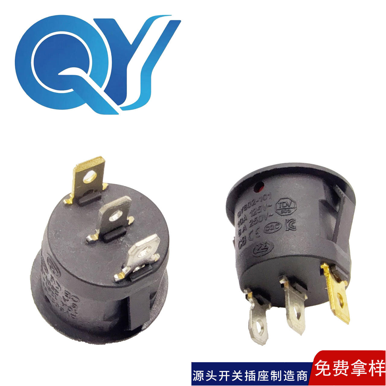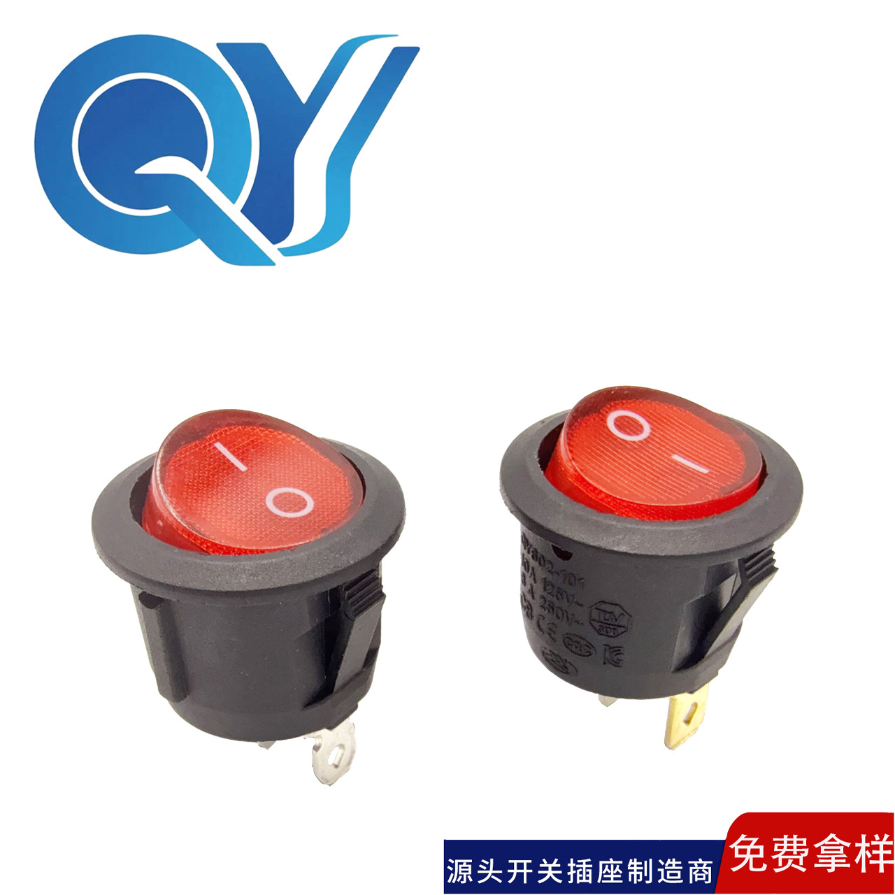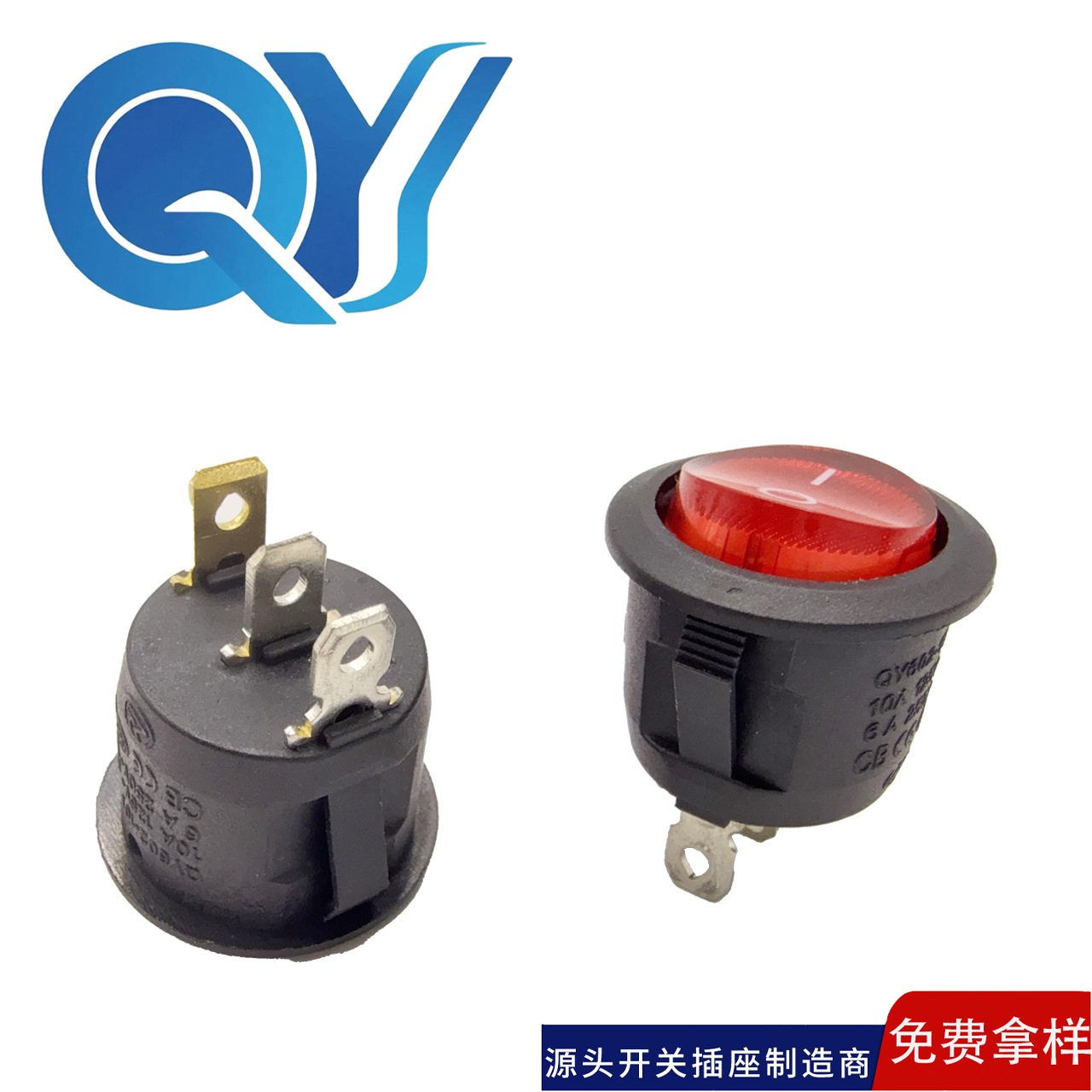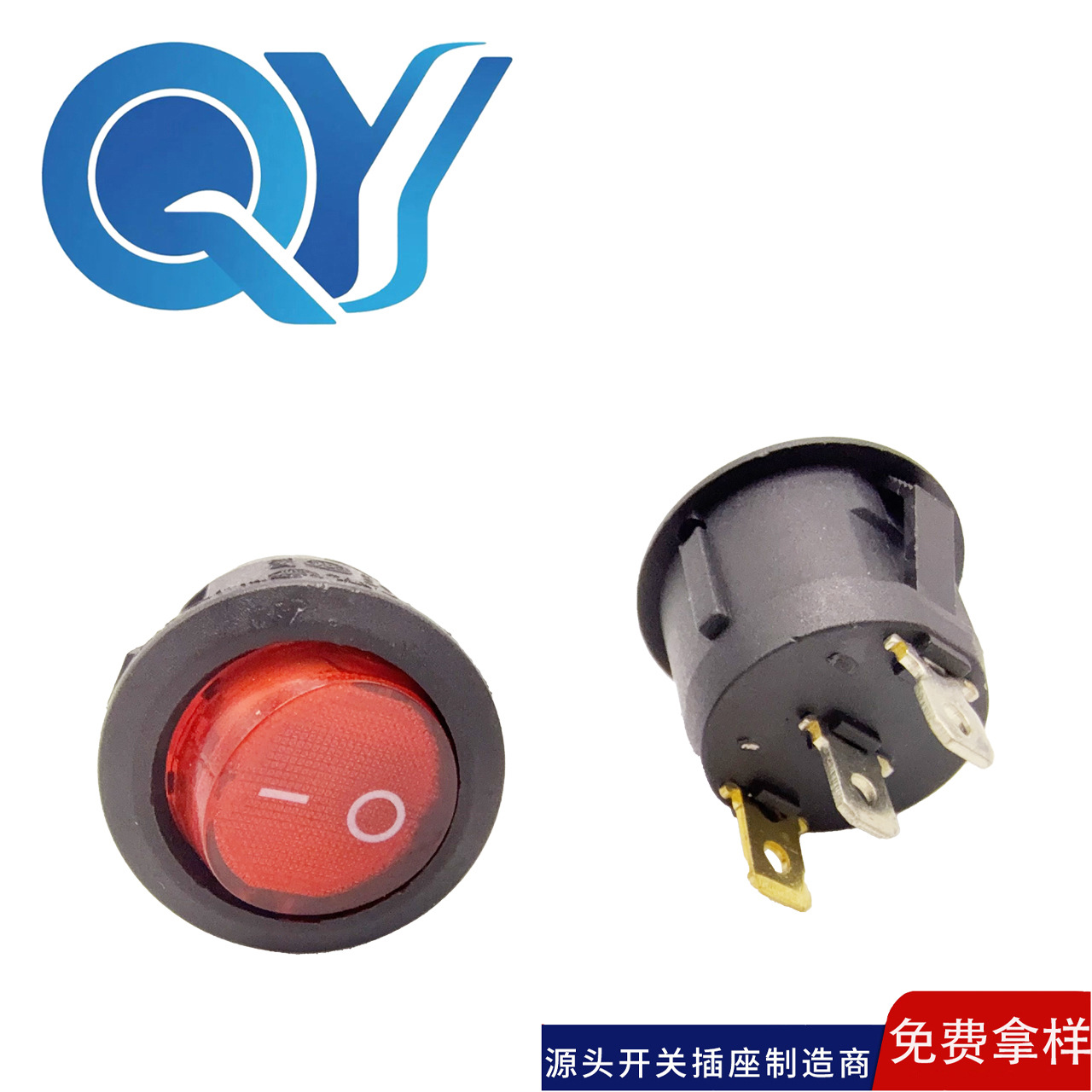船型开关圆形三脚红色带灯 KCD1船形跷板开关 红色带灯电源开关