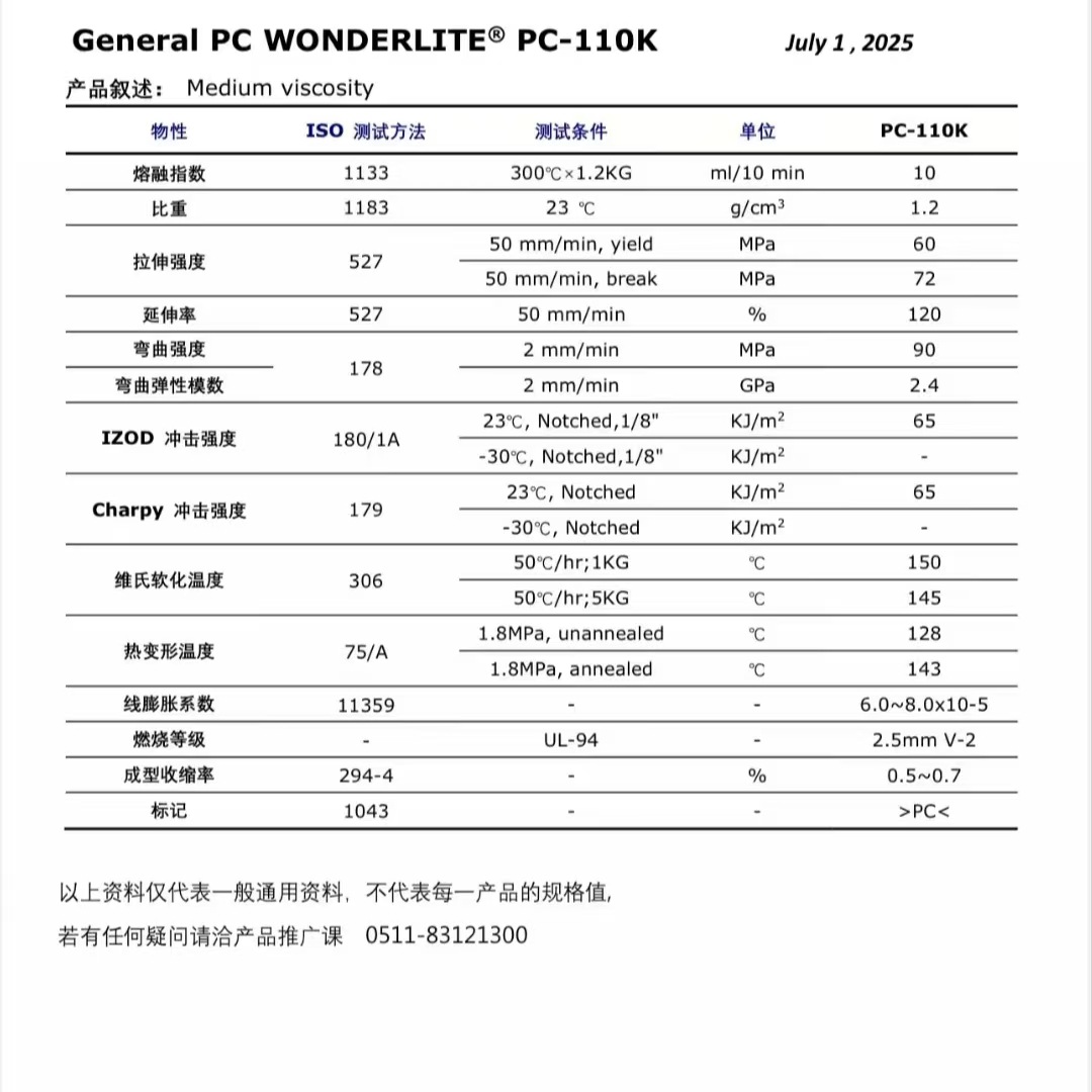 PC漳州奇美PC-110K聚碳酸酯颗粒台湾奇美pc110塑料颗粒透明pc