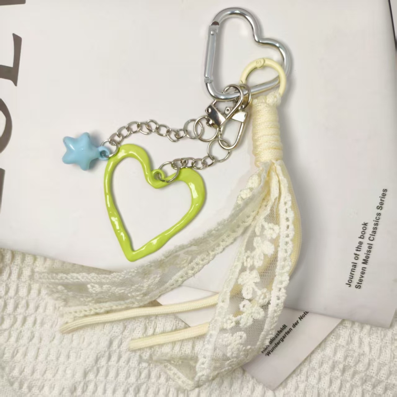 新款创意潮流蕾丝花边长飘带绳子钥匙挂件diy双色包包挂饰品挂绳