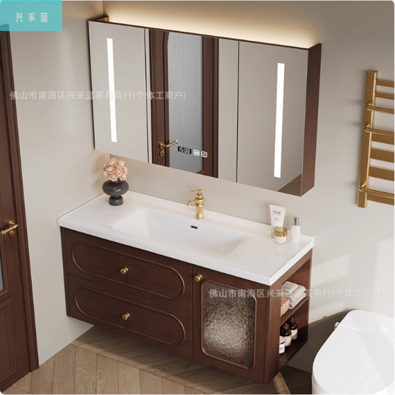 | 台面类型 | 一体陶瓷盆 | 柜体材质 | 橡胶木 |