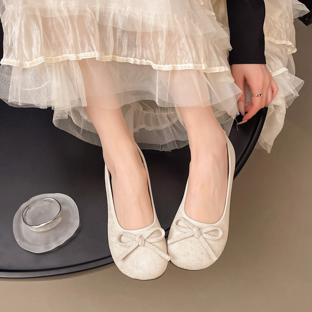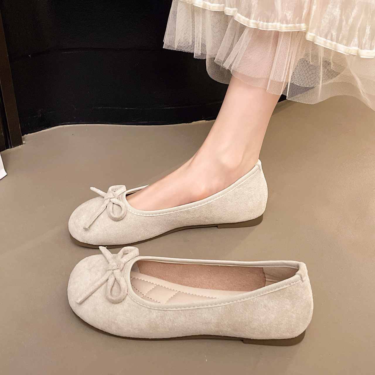 温柔仙女软底芭蕾舞鞋浅口平底蝴蝶结磨砂绒圆头单鞋女鞋大码夏季