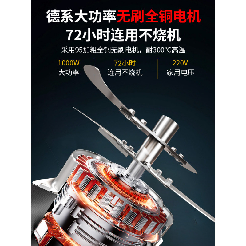 规格型号(加大出料口)1000W纯铜电机-特厚不锈钢桶【八个合金刀片+插板+钢铲】+终身质保+终身送刀