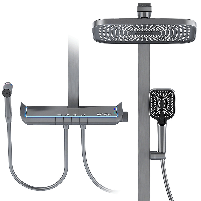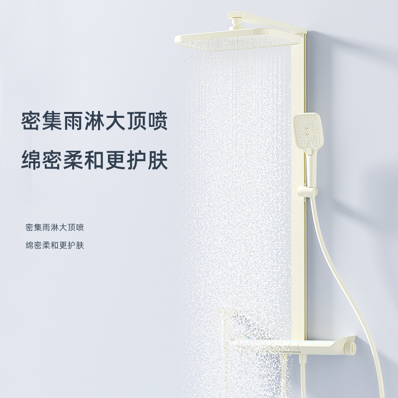 九牧王浴室卫生间奶油白枪灰花洒套装增压恒温冷热调节氛围灯淋浴