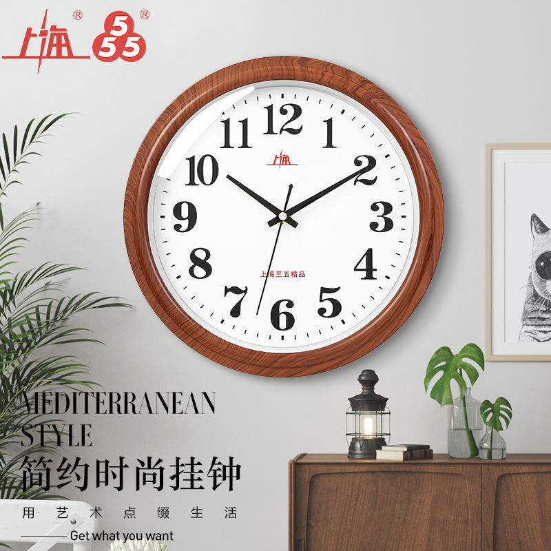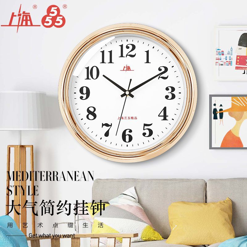 上海三五挂钟客厅钟表现代简约大气时尚静音时钟挂墙免打孔石英钟