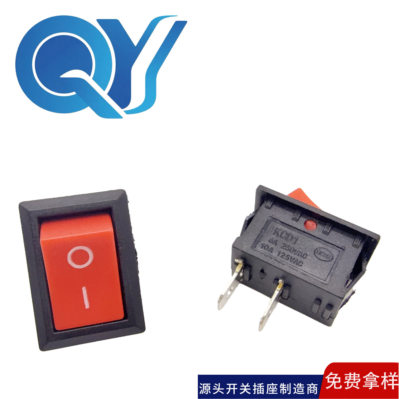 船型开关KCD1两脚两档实心红色斜面电源翘板开关