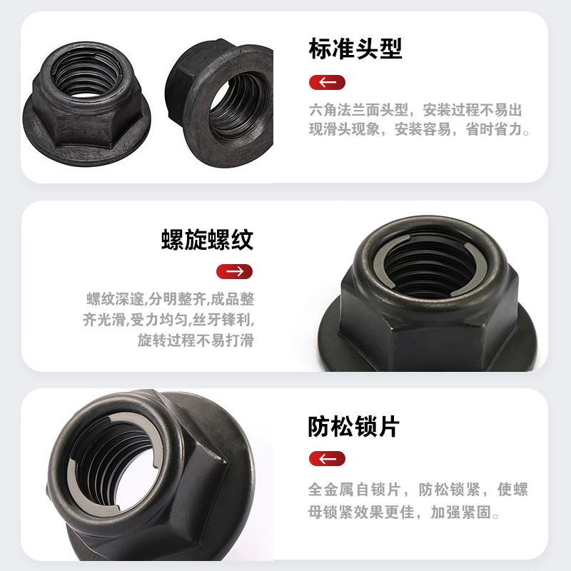 高品质10级碳钢全金属六角法兰面锁紧螺母 Q330B磷化螺帽