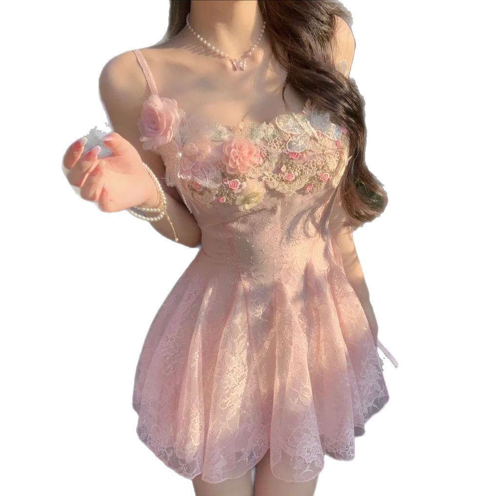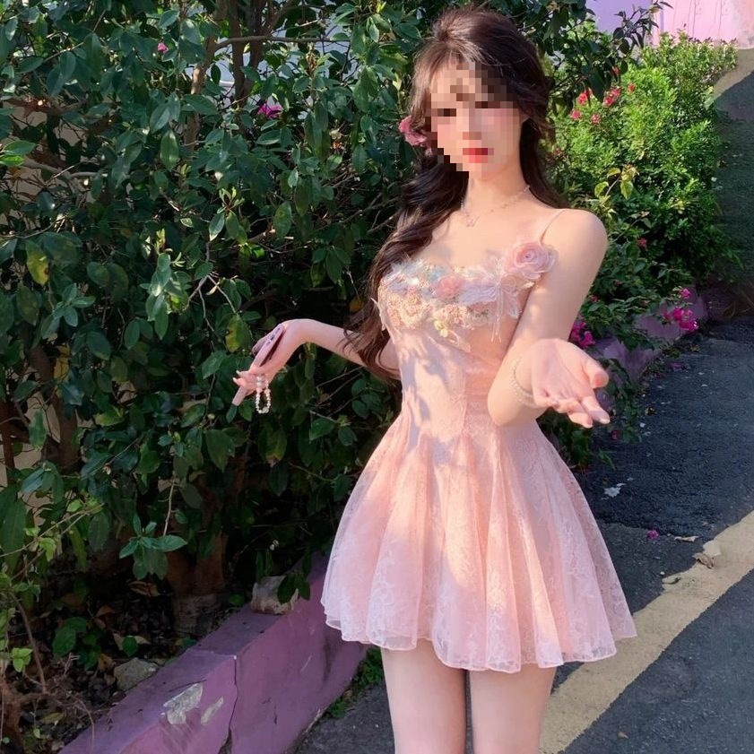 法式气质甜美收腰显瘦春季新款蕾丝小众辣妹短款连衣裙拼接短裙