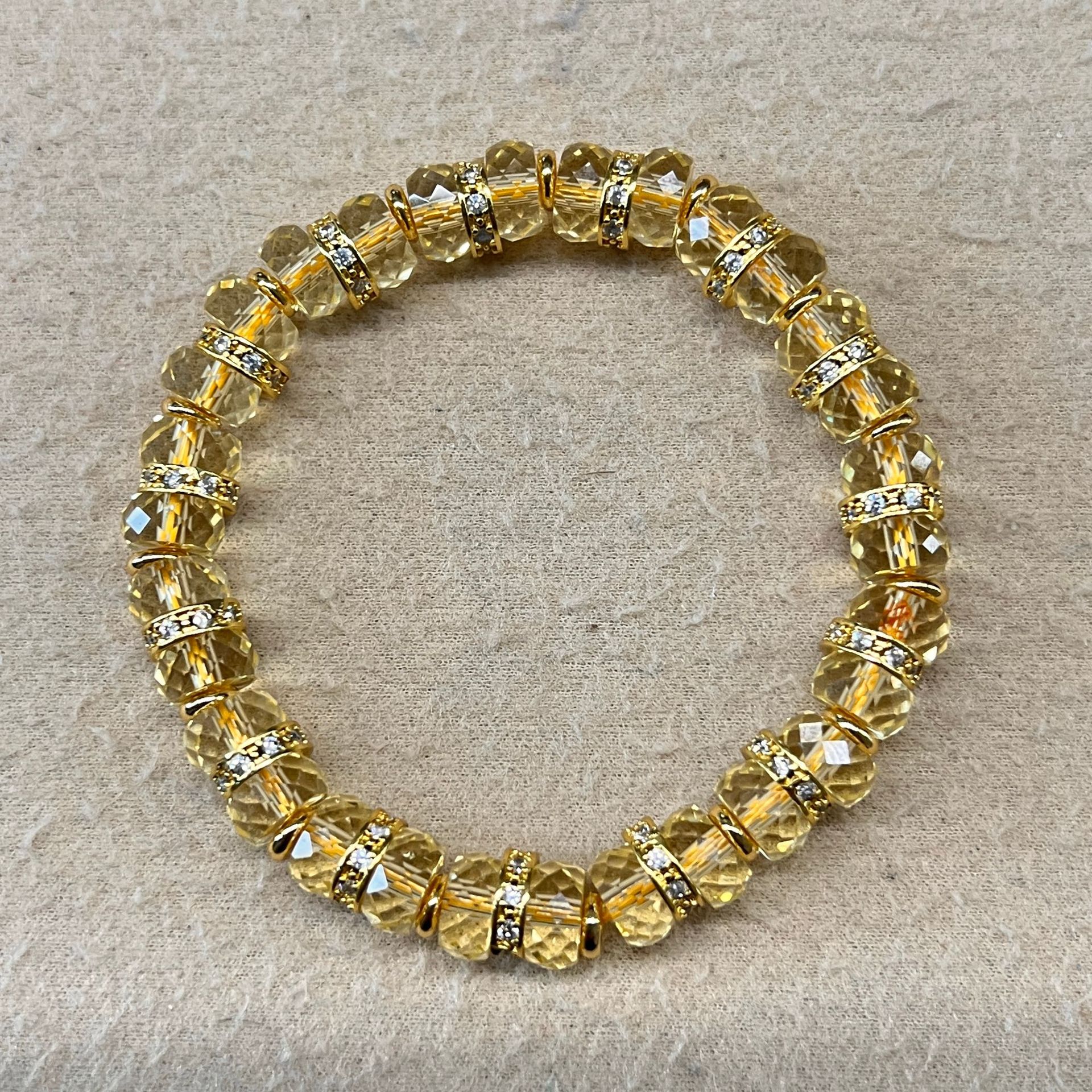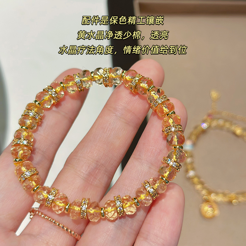 8mm巴西刻切面柠檬黄水晶手串女转运招财车轮盘珠轻奢高级感手链