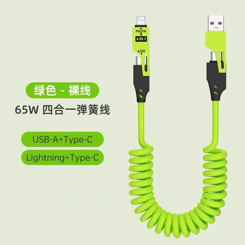 工厂现货 高品质弹簧伸缩四合一超级快充数据线适用苹果华为