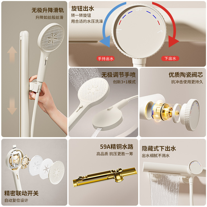 九牧王白色简易无顶喷花洒套装全铜淋浴家用卫生间手持浴缸冷热升
