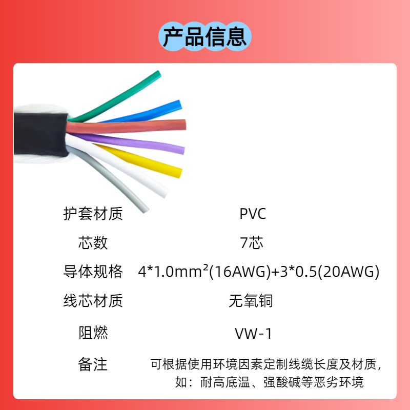 拖链线高柔性电缆7芯 耐弯曲抗扭 工业级耐用拖链专用