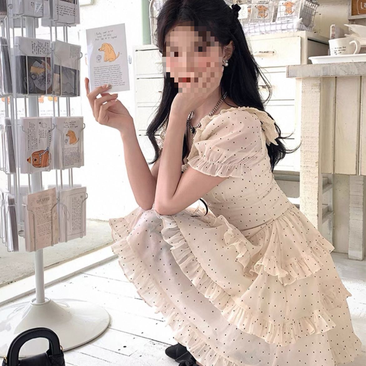 法式甜美温柔风波点蛋糕蓬蓬长裙女春夏季生日礼服收腰显瘦连衣裙