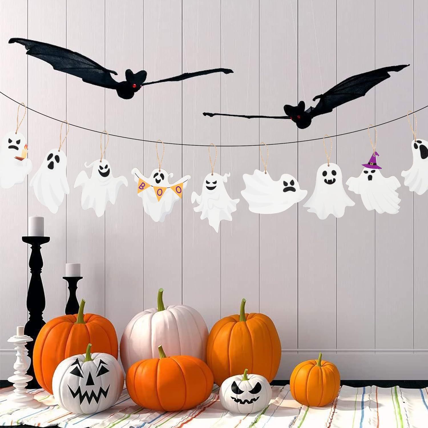 跨境爆款万圣节木制装饰品可爱幽灵树装饰哥特式恐怖悬挂装饰品
