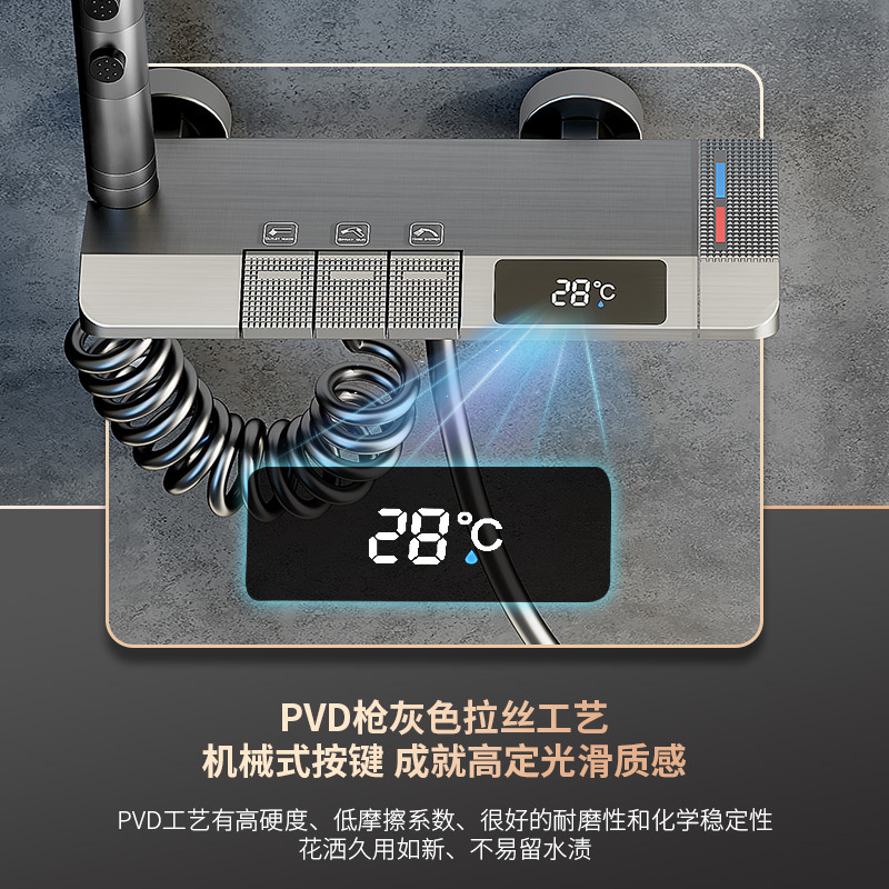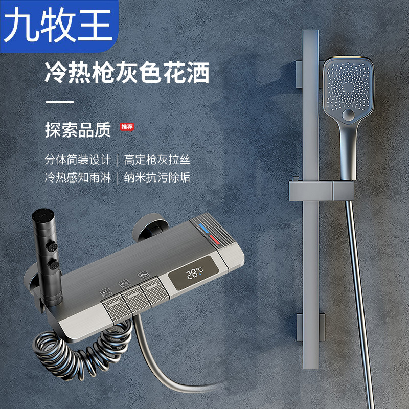 九牧王精铜主体花洒套装不锈钢挂墙式LED淋浴纳米除垢浴室洗澡升