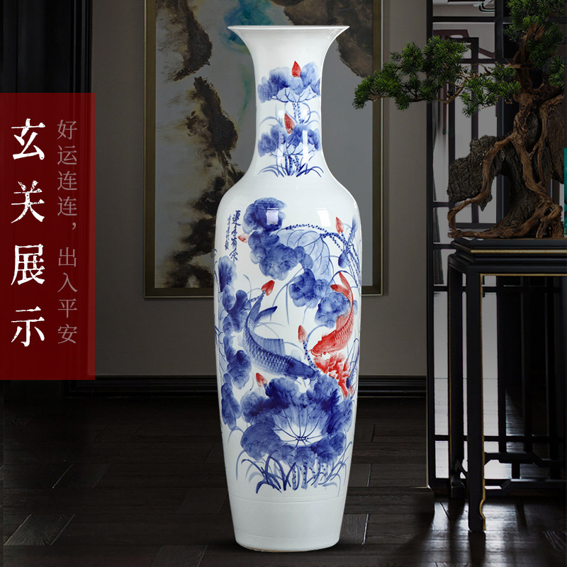 景德镇陶瓷手绘青花落地大花瓶仿古酒店客厅装饰开业礼品摆件大号