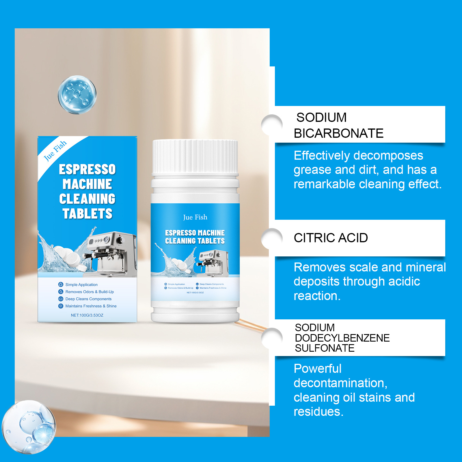 JUE FISH 咖啡机清洁片 通用型日常温和清洁咖啡机污渍水垢清洁片