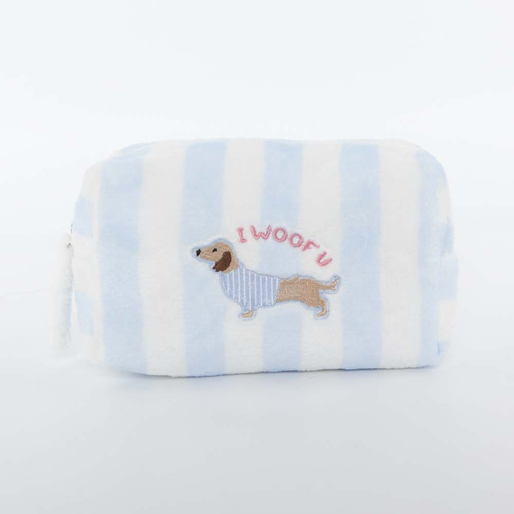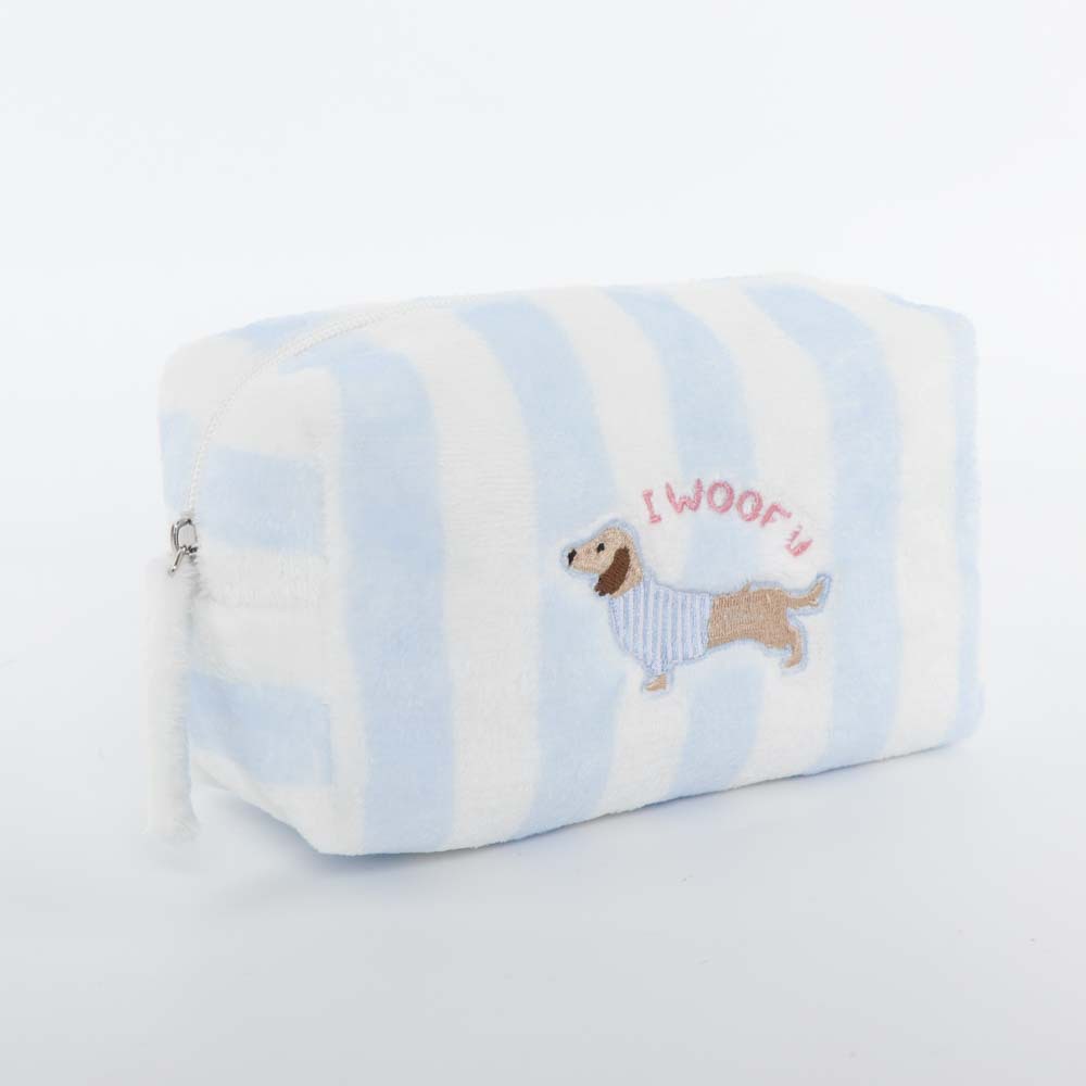 毛绒八角化妆包萌系小狗刺绣可爱便携日常出行美妆小物整理收纳袋