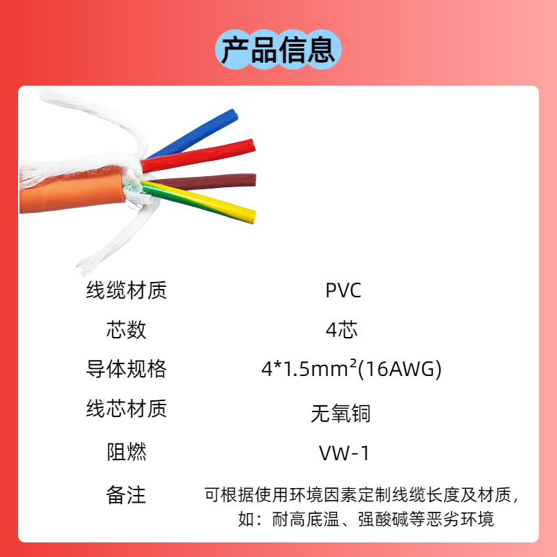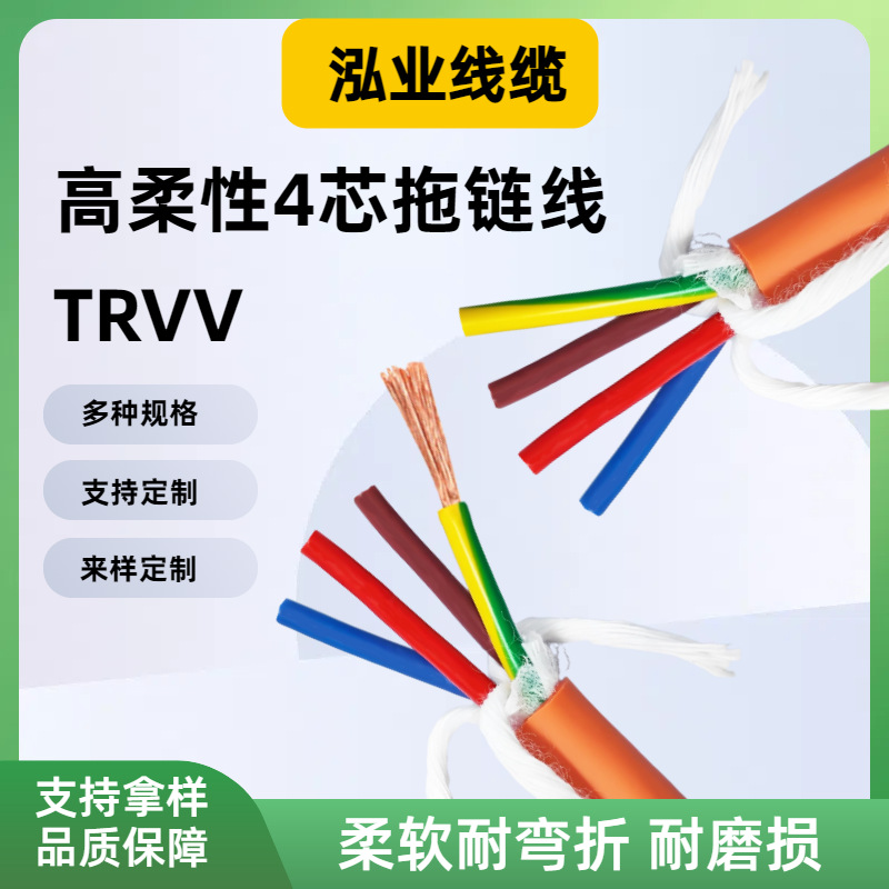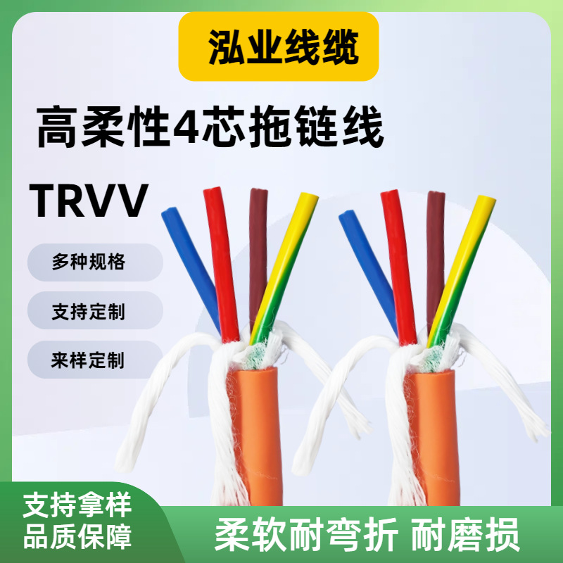 TRVV铜芯电缆耐温耐油阻燃4芯高柔性拖链电缆工业机器人线缆