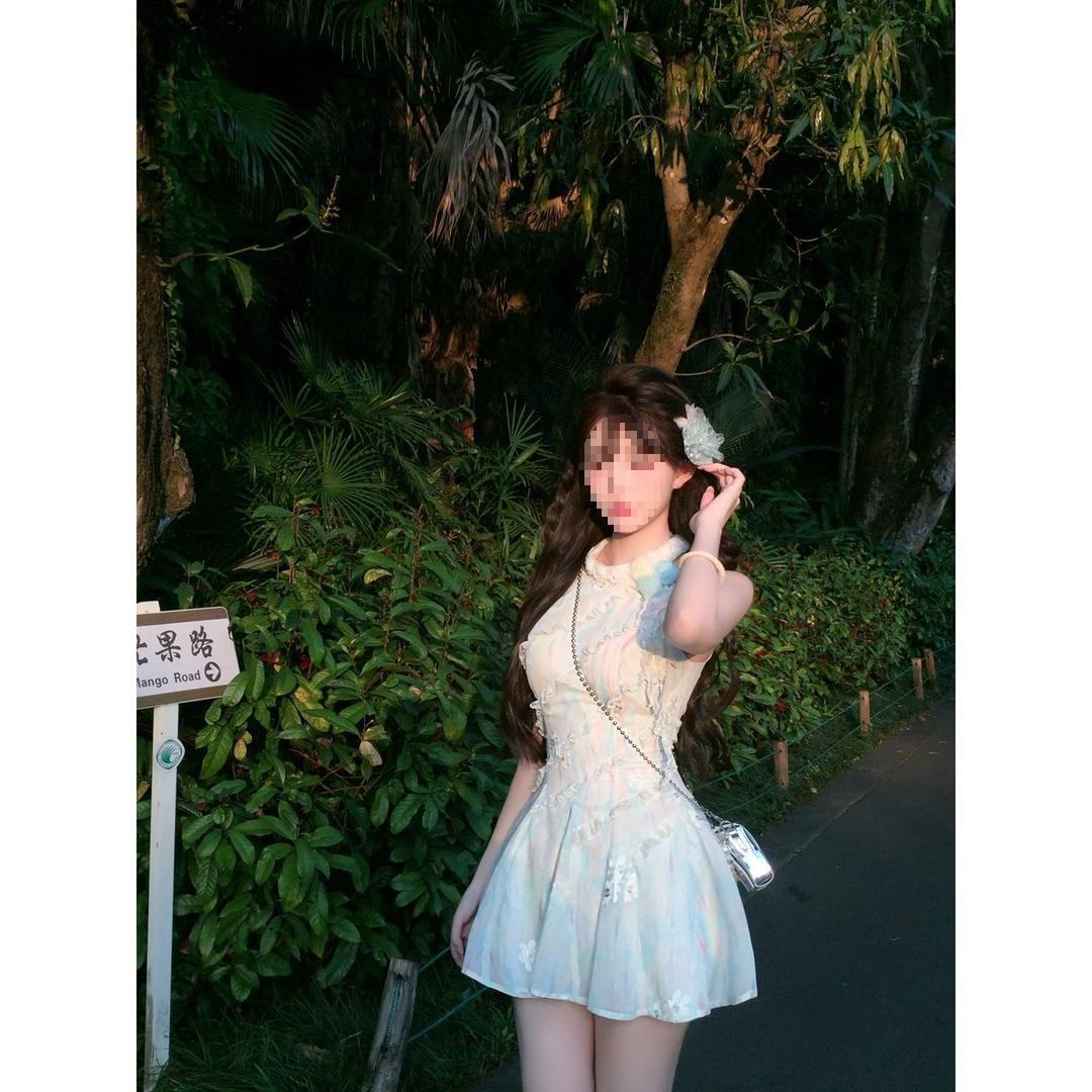 茉莉青绿 夏季甜美显瘦收腰设计感短款连衣裙