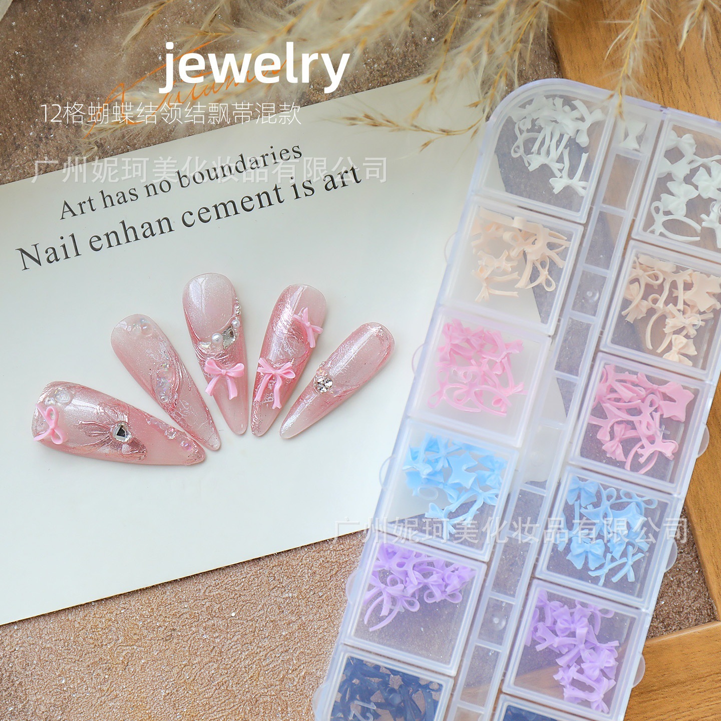 彩色迷你蝴蝶结美甲小饰品网红爆款穿戴甲光疗甲DIY领结飘带配饰