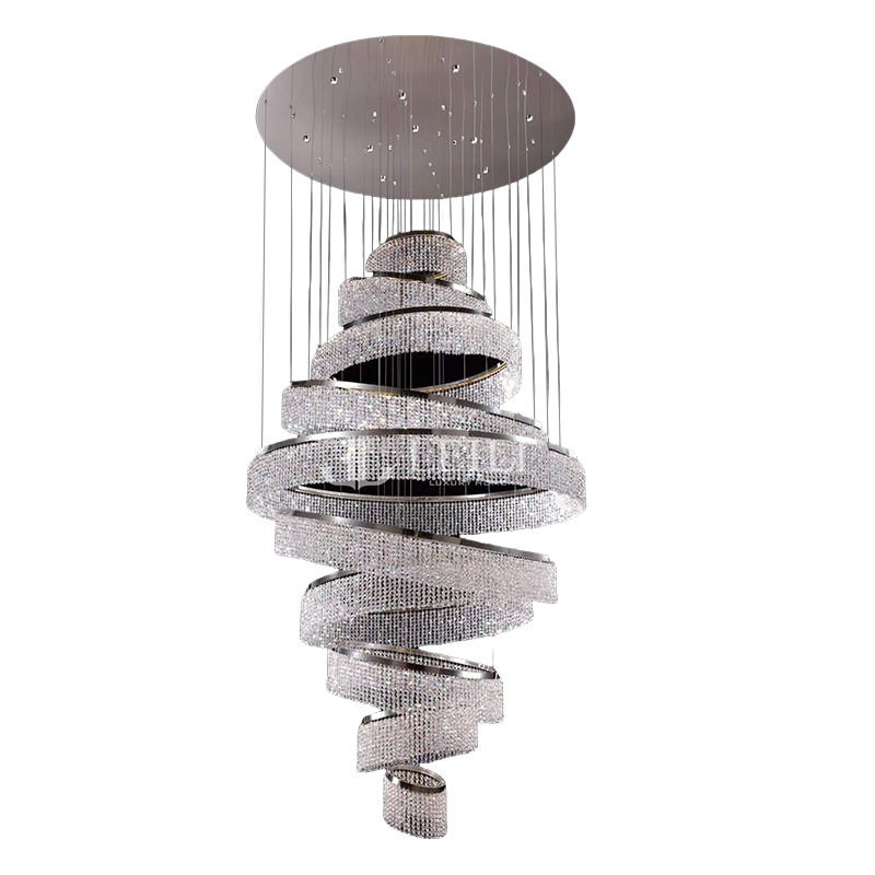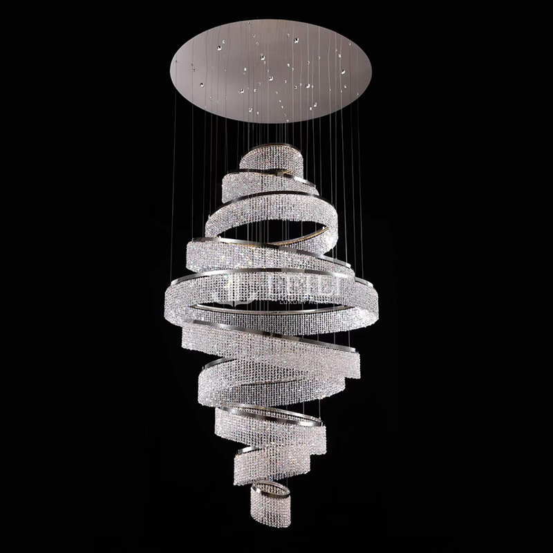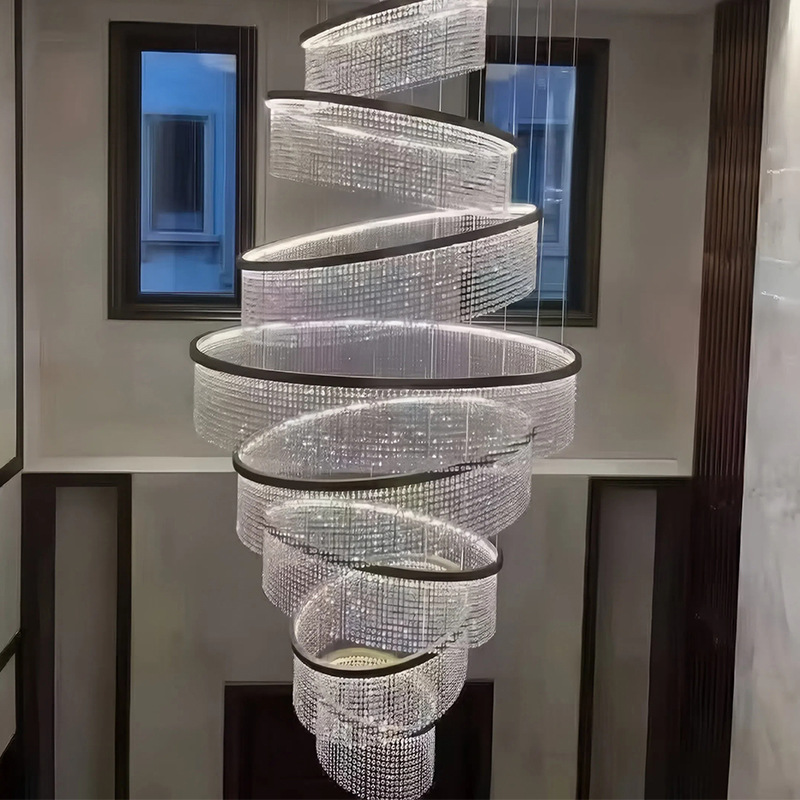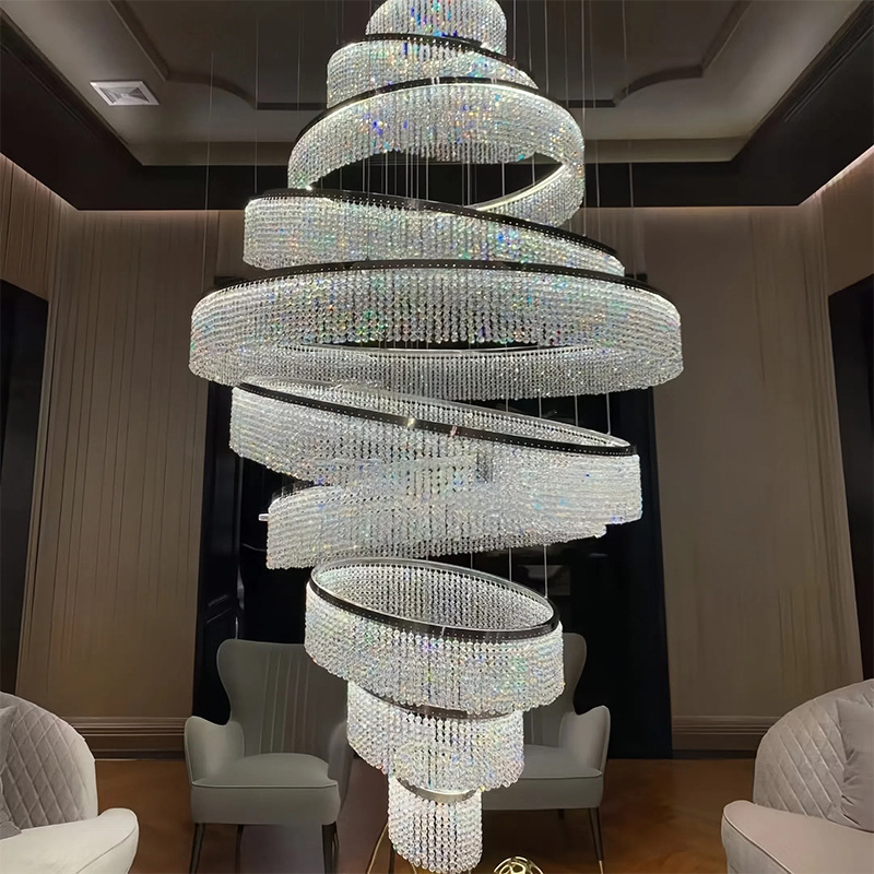 现代轻奢水晶吊灯别墅复式楼大吊灯家用客厅创意大气旋转水晶灯