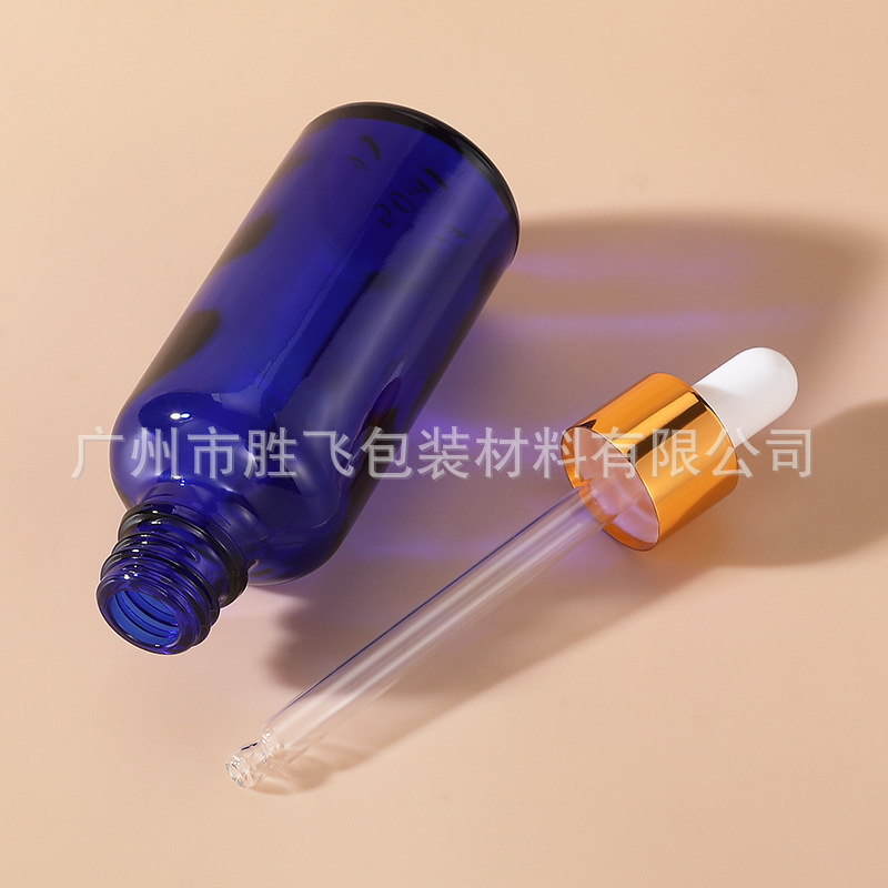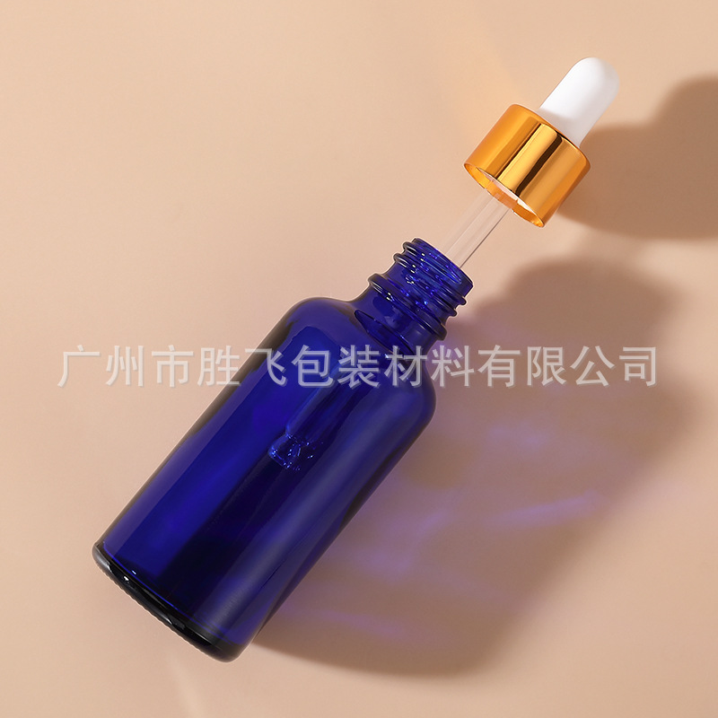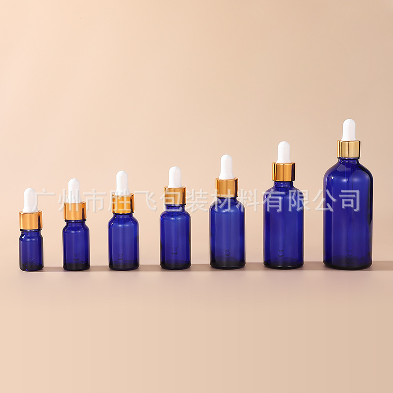 厂家现货5-100ML蓝色玻璃胶头滴管精油瓶多规格精油乳液调配瓶