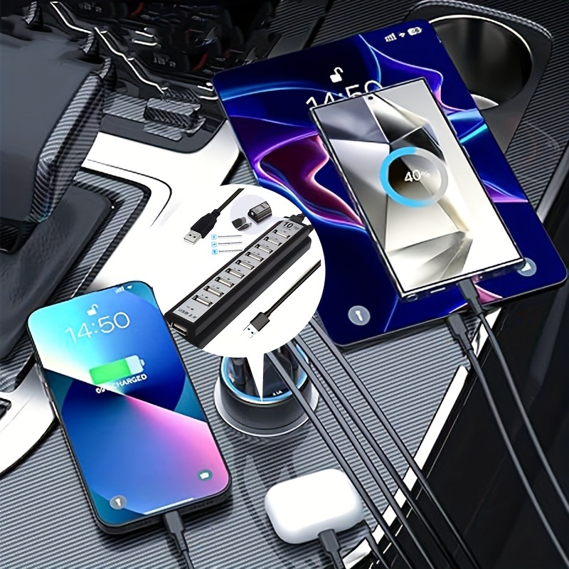 10端口 USB车载充电器扩展器分配器适用于设备充电和快速数据传输