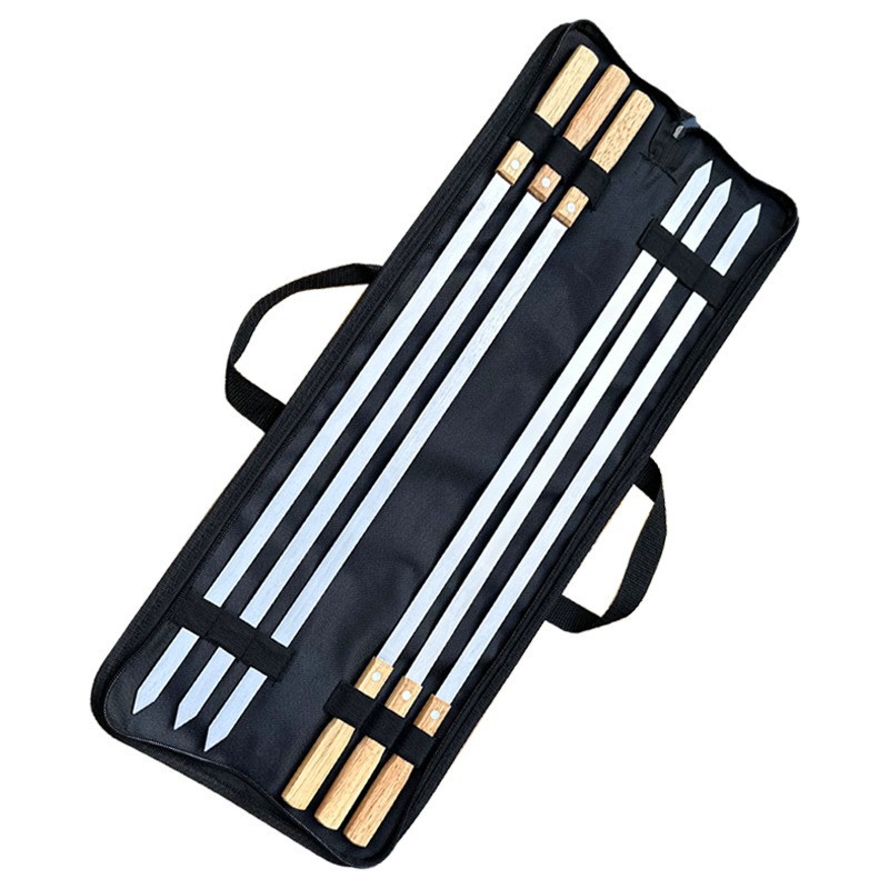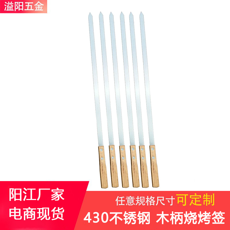 现货60CM大号不锈钢烧烤签橡木柄大扁签加厚加宽烤肉签羊肉叉户外