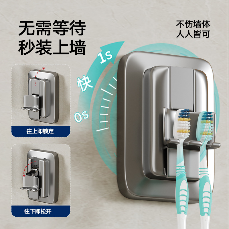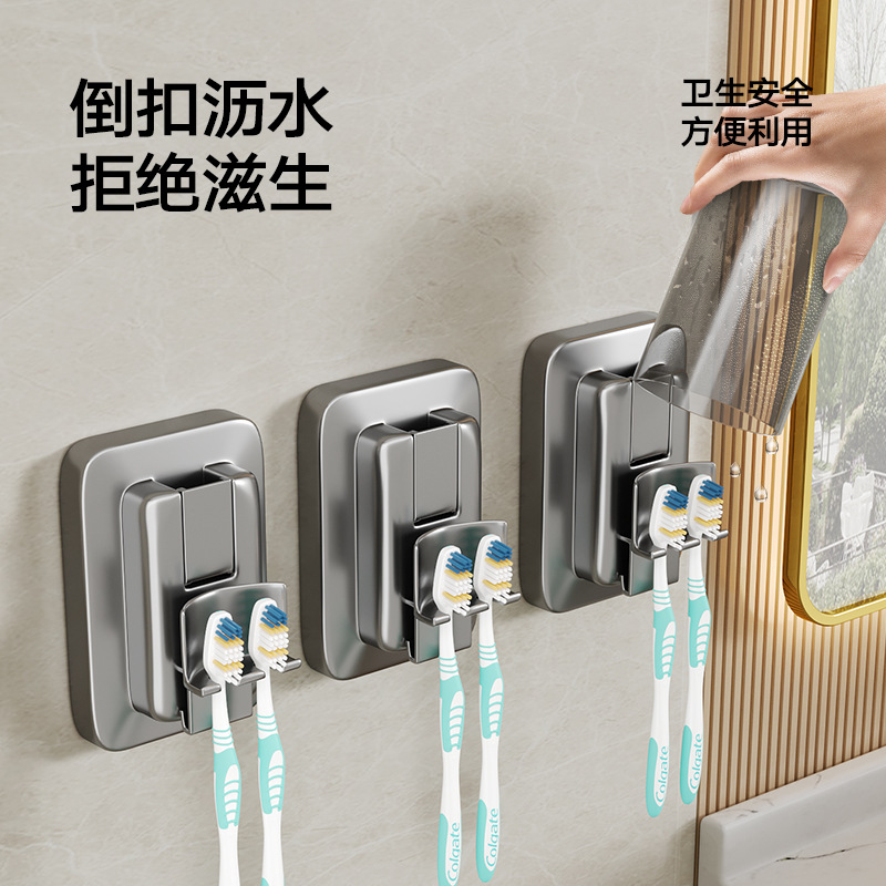 一件代发免打孔吸盘式枪灰色浴室卫生间牙刷牙杯牙具收纳置物架