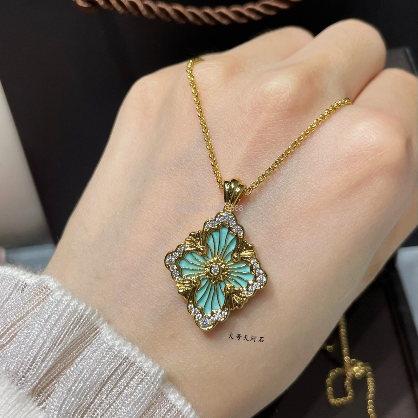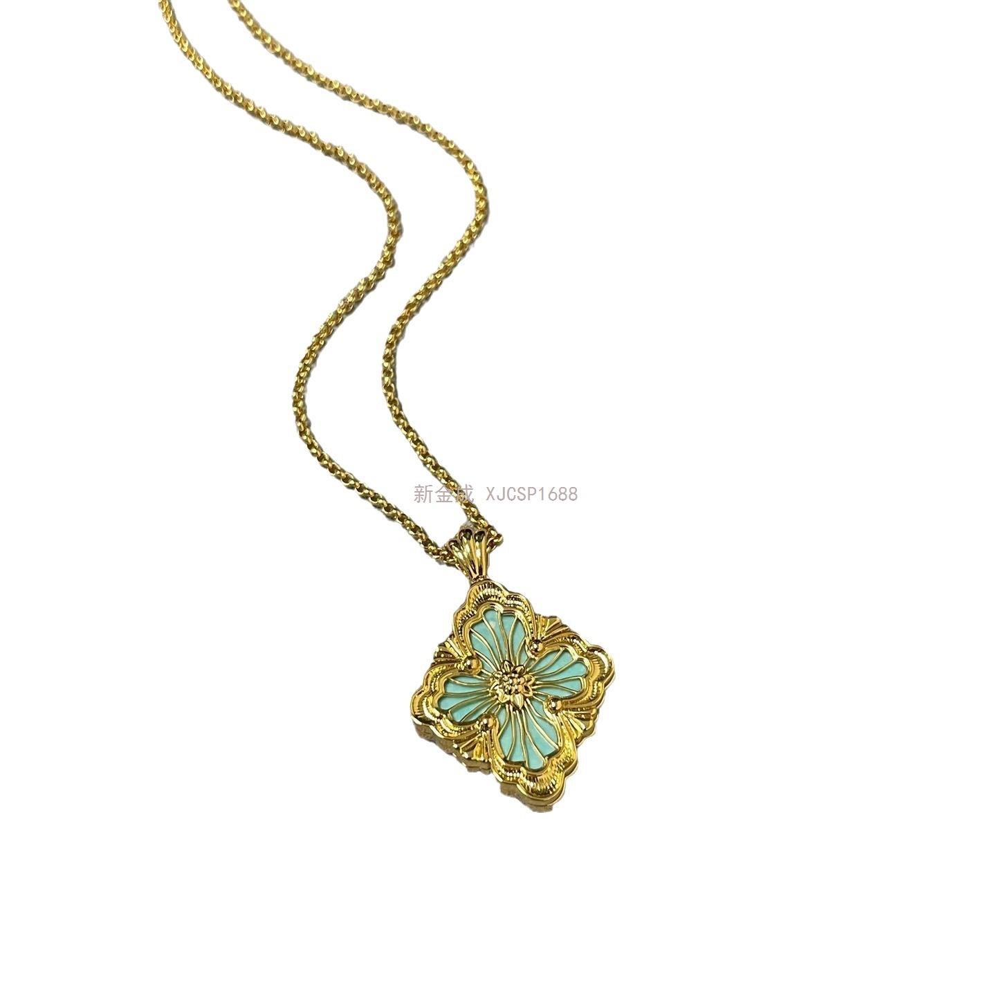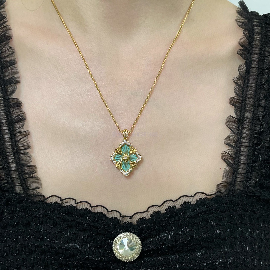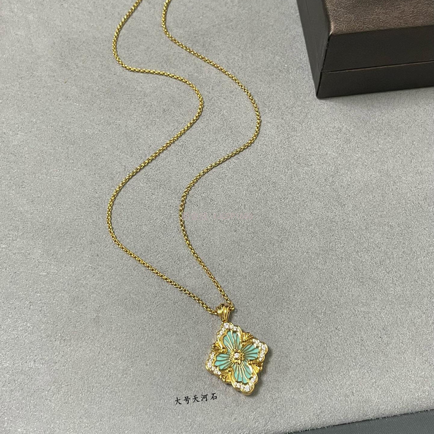 布契歌剧院四叶草项链高品质CNC天河蓝白贝母镶钻锁骨链工厂直销