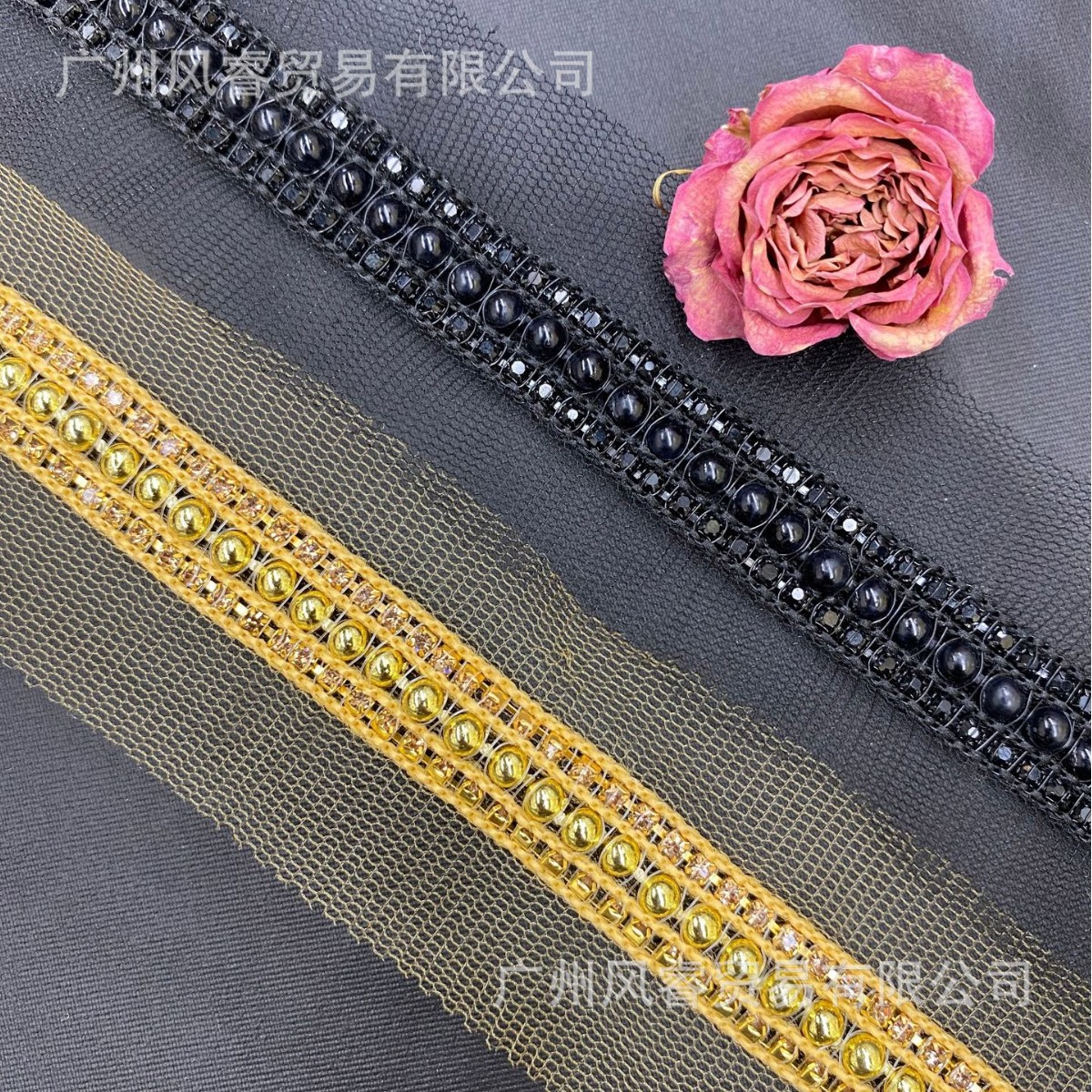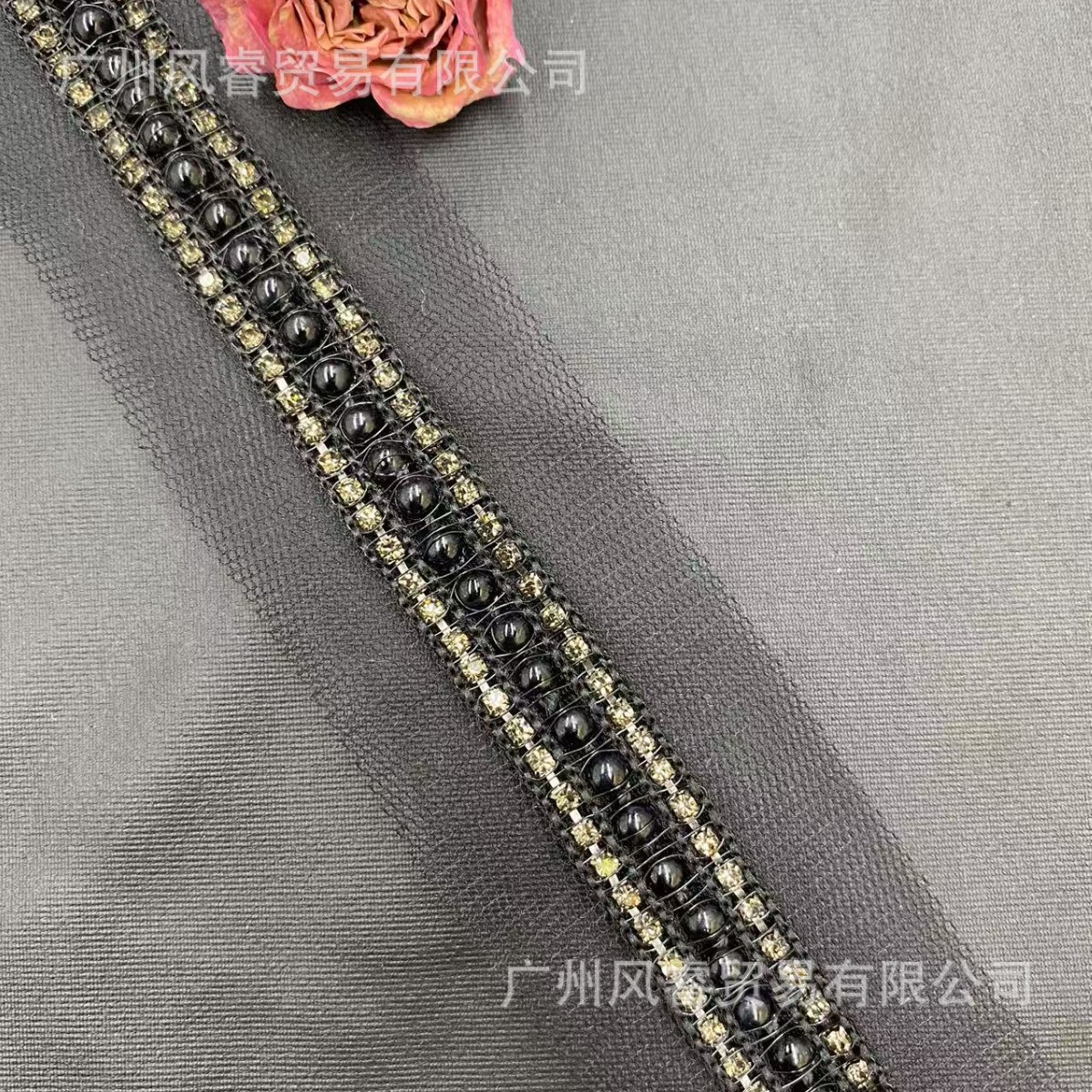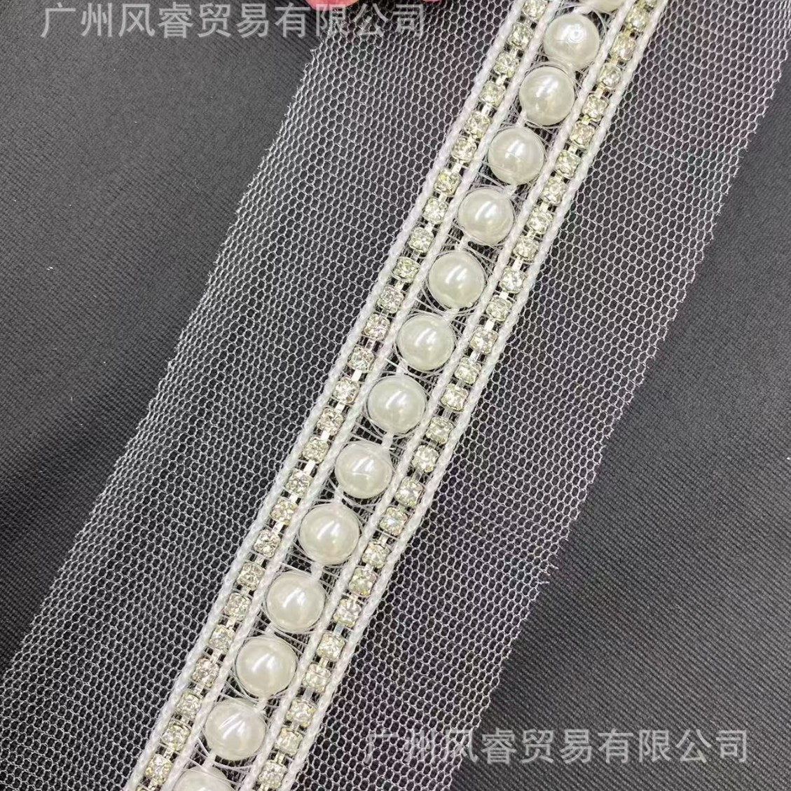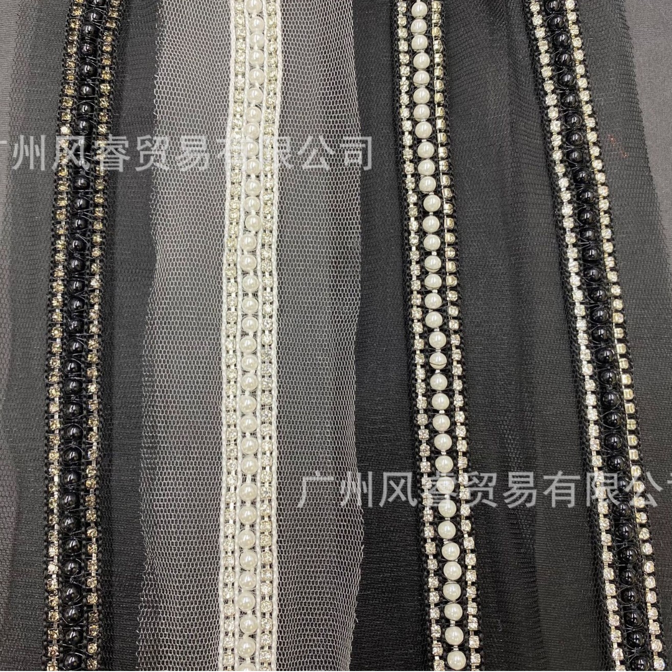 厂家现货珠钻链条网纱花边 鞋帽窗帘服装条码手工diy珠链蕾丝辅料