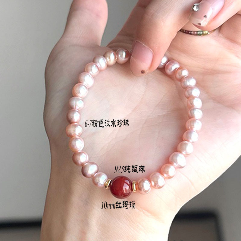 | 颜色 | 925银【水木】天然珍珠和天然白水晶 | 颜色 | 925银【火金】天然珍珠和天然红玛瑙珠 |
