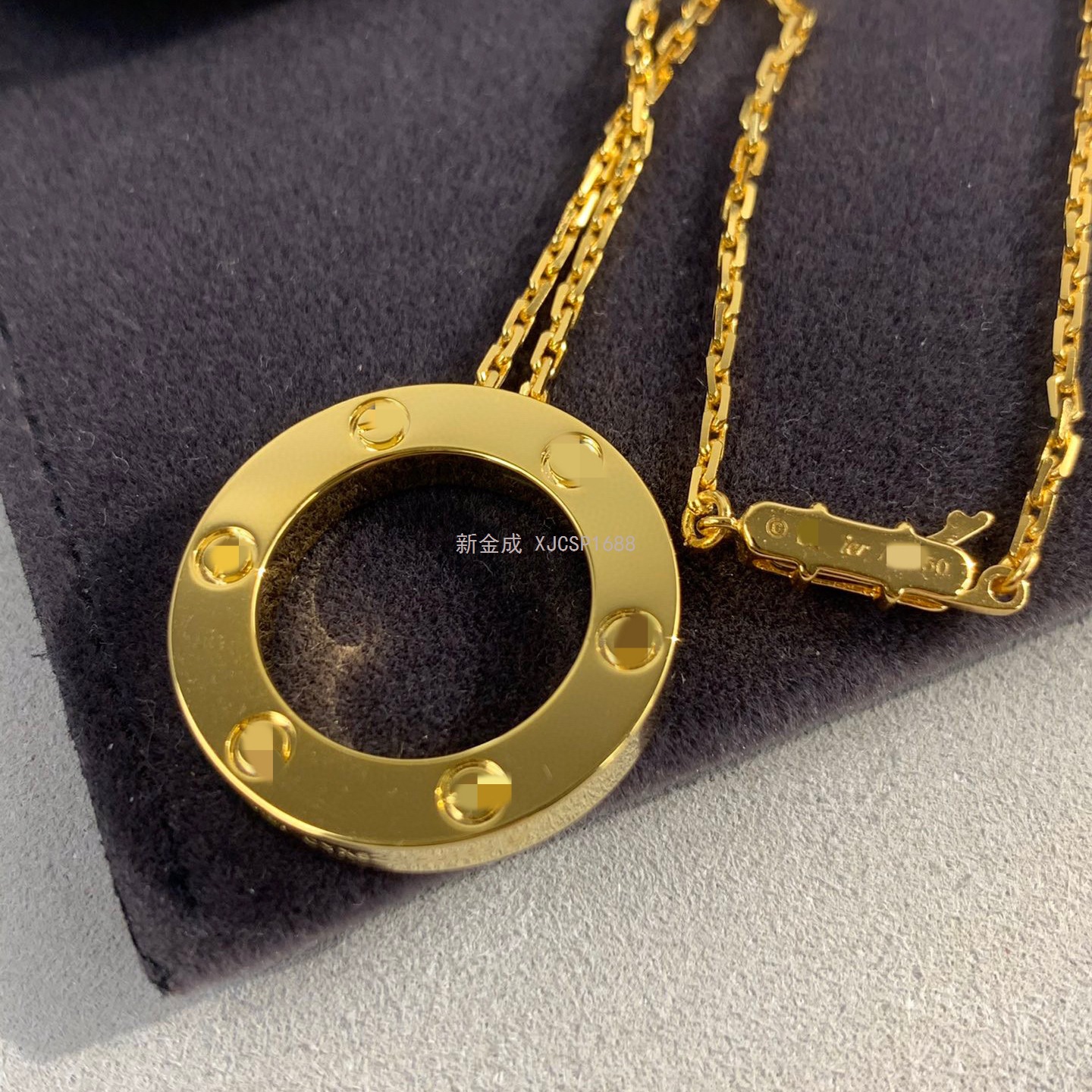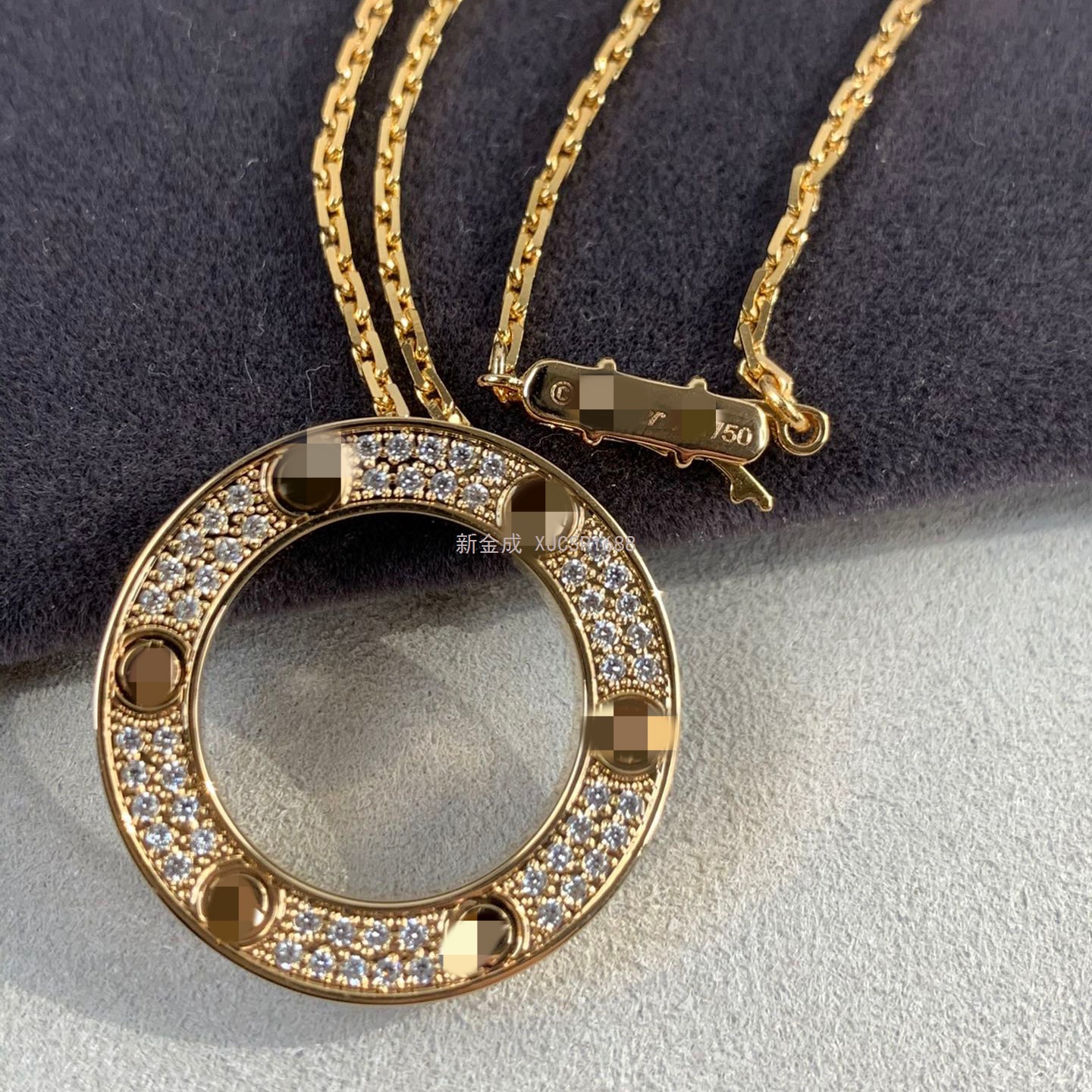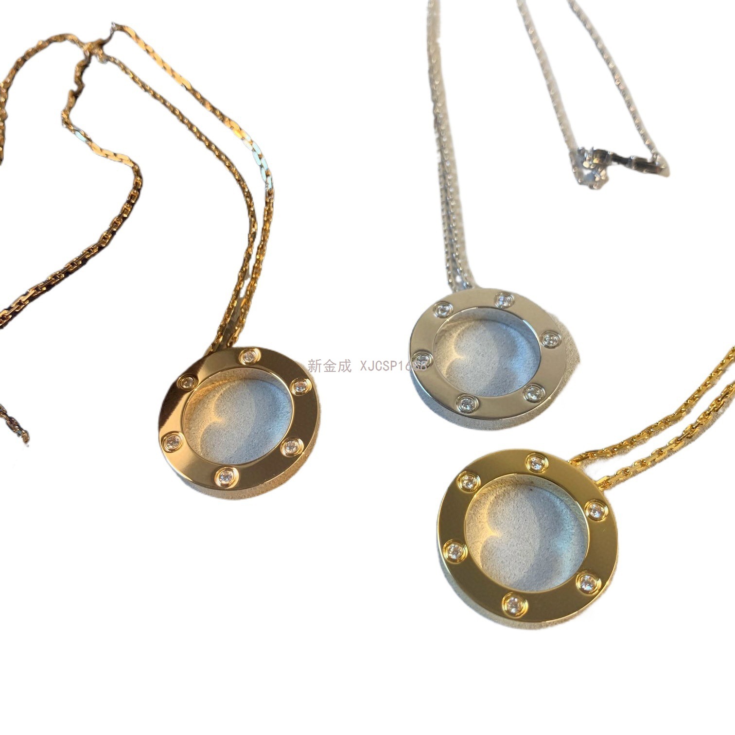 love系列大饼满钻满天星项链V金厚镀18K金圆饼吊坠锁骨链精工版