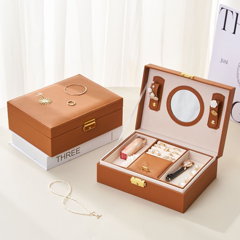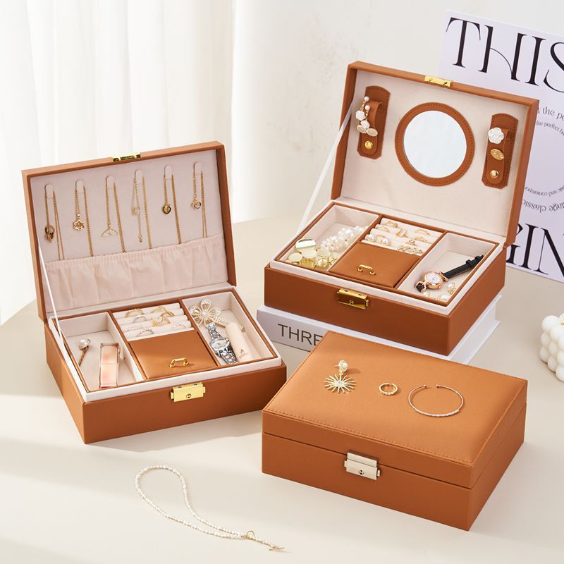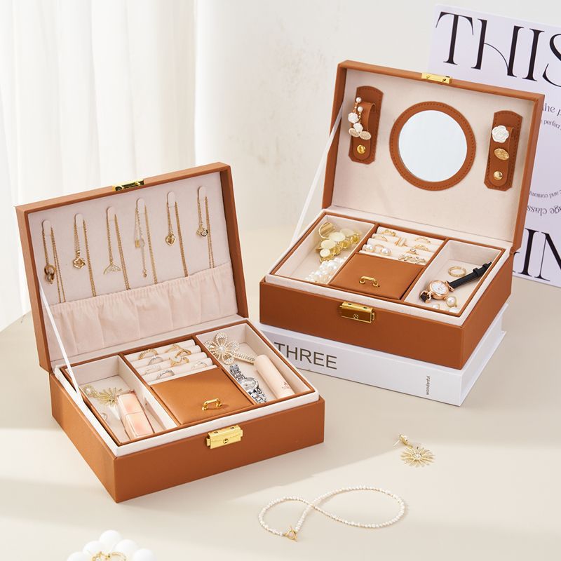 新款美拉德双层首饰盒高档精致防氧化耳环项链耳钉耳饰饰品收纳盒