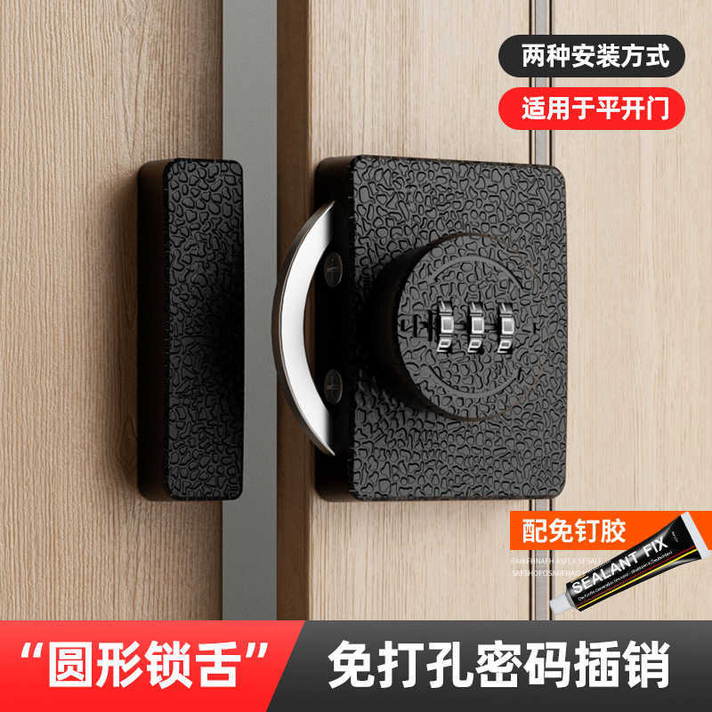 免打孔柜门锁抽屉锁通用推拉门锁扣鞋柜玻璃移门密码锁柜子储物柜
